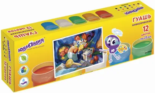 Гуашь "Юнландик-Художник", 12 цветов по 25 мл, без кисти