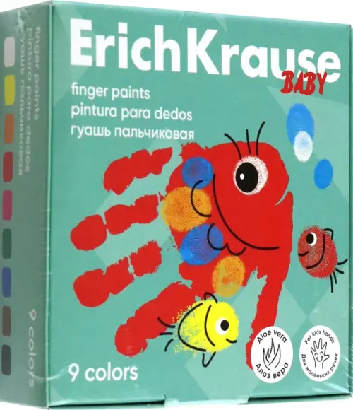Гуашь пальчиковая ErichKrause Baby с Алоэ Вера, 9 цветов по 20 мл.