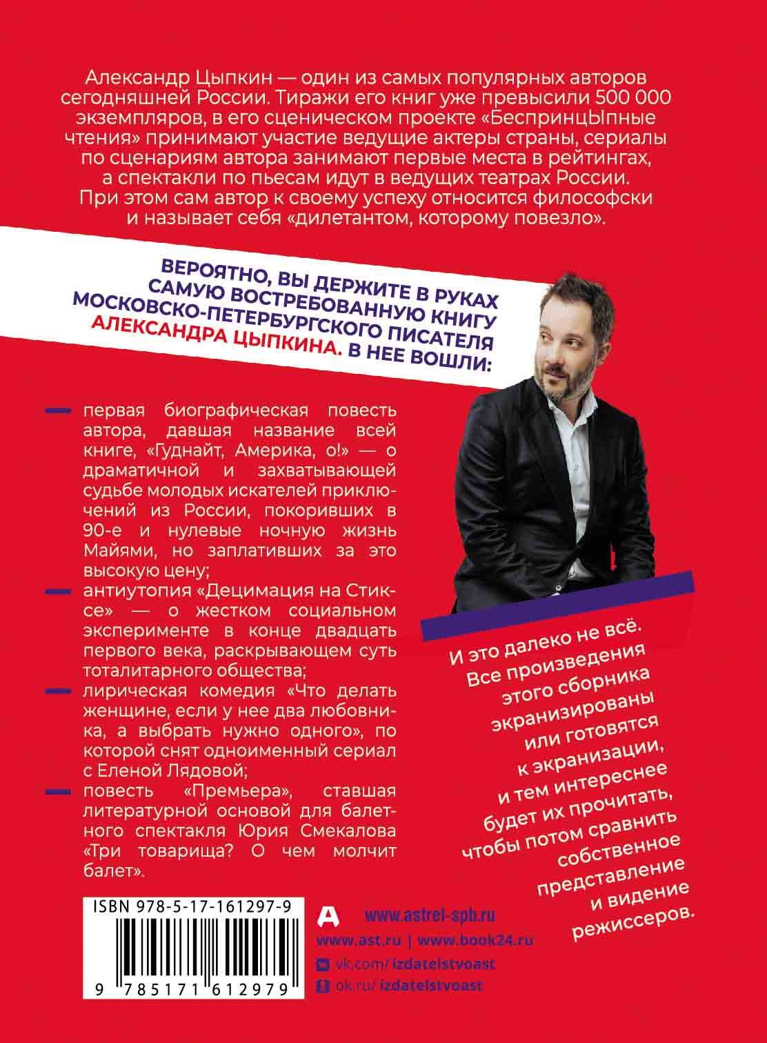 Восемь новых произведений от Александра Цыпкина - создателя культового проекта «БеспринцЫпные чтения», автора сборников короткой прозы «Дом до свиданий», «Женщины непреклонного возраста», «Полузащитник Родины» и многих других. Все вошедшие в сборник тексты будут экранизированы! А по мотивам пьесы «Что делать женщине, если у нее два любовника, а выбрать нужно одного» уже вышел сериал с Еленой Лядовой в главной роли!| Издательство | Издательство "АСТ" |