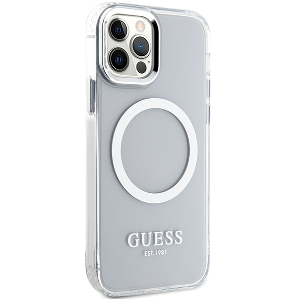 Guess GUHMP12MHTRMS iPhone 12|12 Pro 6.1" |Серебристый жесткий чехол Metal Outline Magsafe