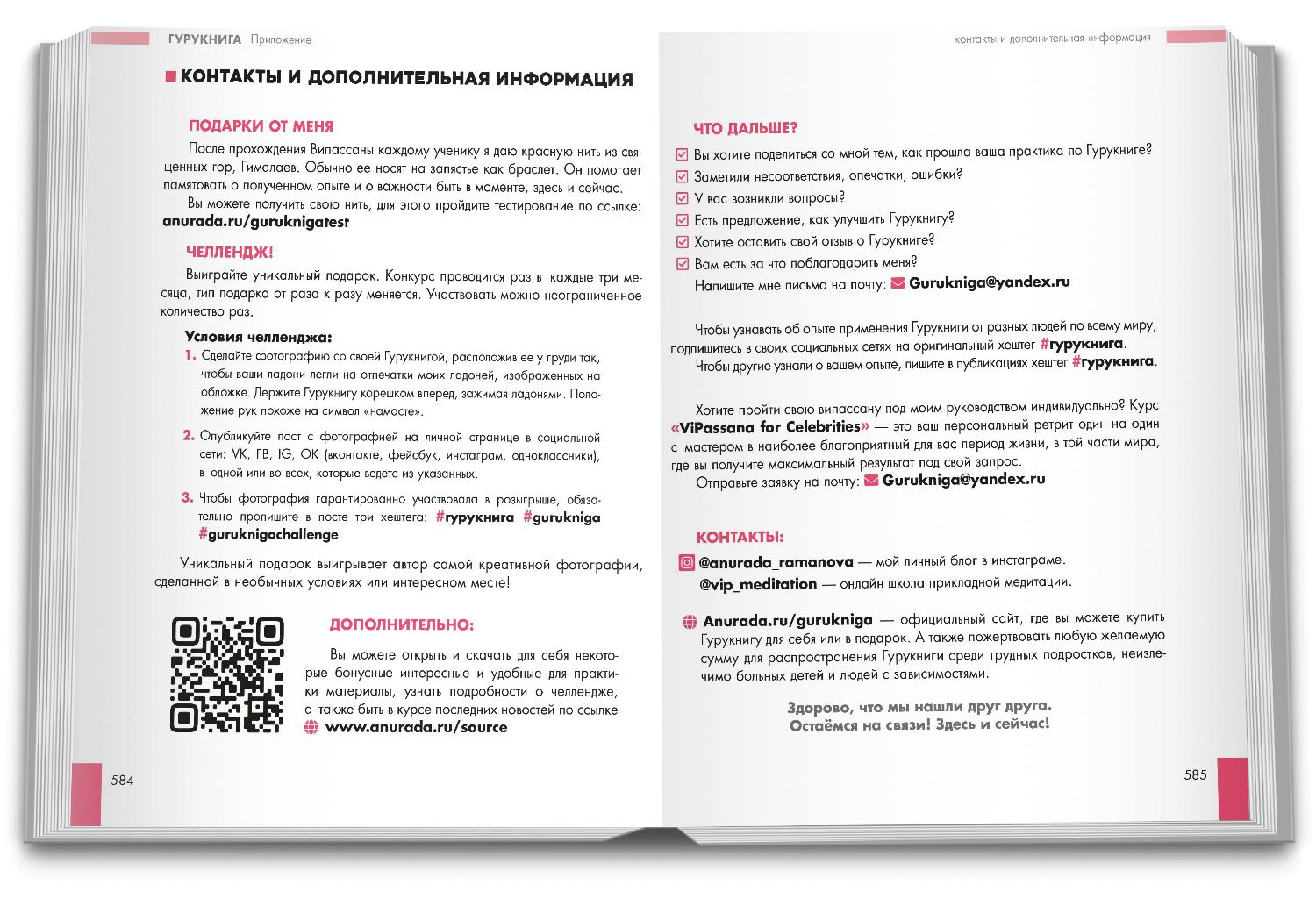 Анурада Раманова - мастер традиционной медитации, йог, аюрведический диетолог. На протяжении десяти лет практиковала випассану самостоятельно и обучала людей индивидуально и в группах. Накопленный опыт по организации випассаны сконцентрирован в виде книги, которая будет, словно Гуру, непосредственно вести человека шаг за шагом, инструктируя и обучая методике випассана медитации. Такой формат дает возможность освоить эту технику людям по всему миру, в разных традициях, на разных языках. В Гурукниге представлен комплексный подход к проведению випассана ретрита. Комфортный режим практики (максимум 4 часа медитации в день) дополнен несколькими техниками, которые позволяют максимально глубоко погрузиться в процесс и освоить навык медитации в полном объеме в короткий срок. Особое внимание уделено питанию. Оно подобрано с учетом знаний сокровенной аюрведы о влиянии продуктов на сознание, помогает физическому телу и облегчает работу в медитациях.
