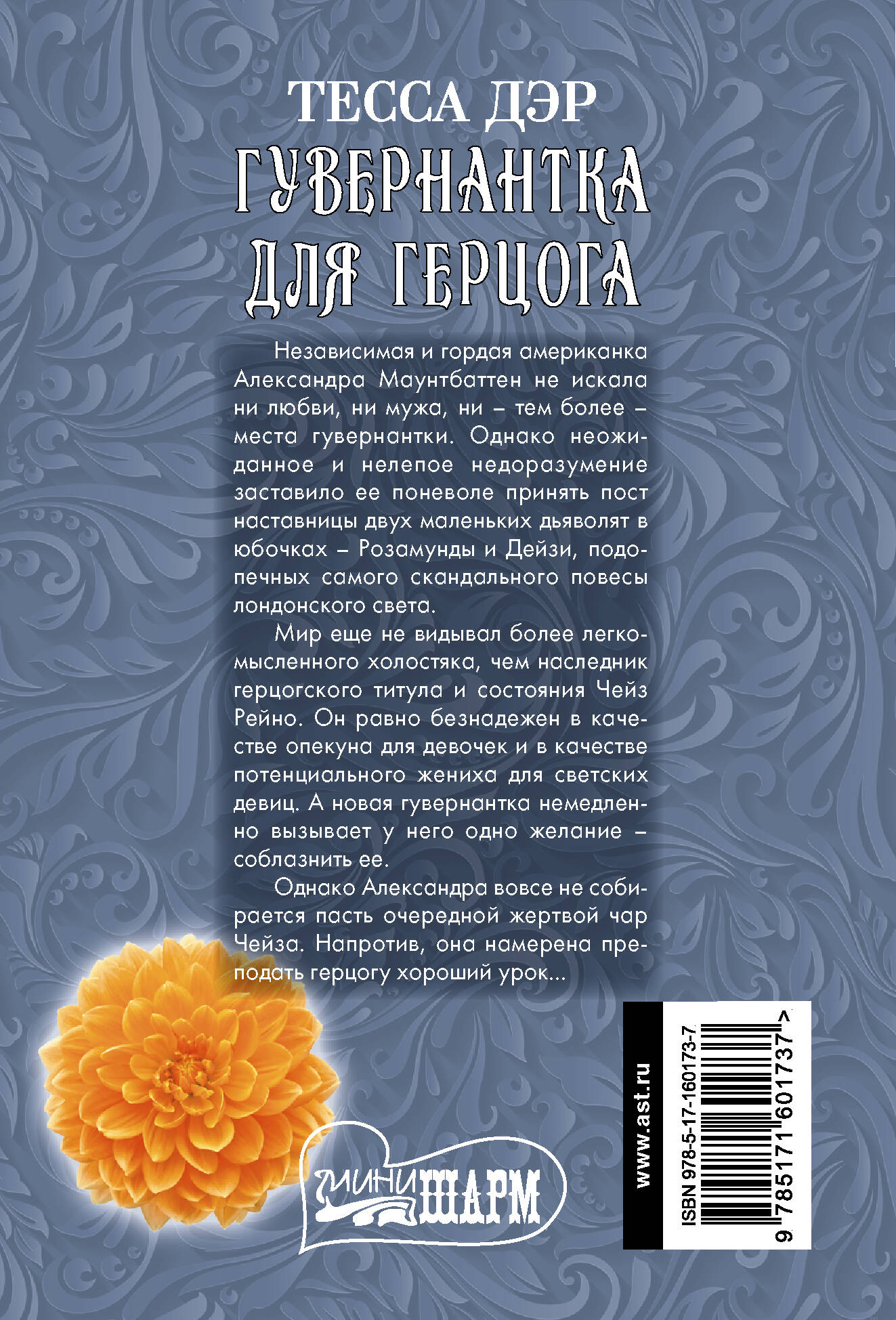 Независимая и гордая американка Александра Маунтбаттен не искала ни любви, ни мужа, ни - тем более - места гувернантки. Однако неожиданное и нелепое недоразумение заставило ее поневоле принять пост наставницы двух маленьких дьяволят в юбочках - Розамунды и Дейзи, подопечных самого скандального повесы лондонского света. Мир еще не видывал более легкомысленного холостяка, чем наследник герцогского титула и состояния Чейз Рено. Он равно безнадежен в качестве опекуна для девочек и в качестве потенциального жениха для светских девиц. А новая гувернантка немедленно вызывает у него одно желание - соблазнить ее. Однако Александра вовсе не собирается пасть очередной жертвой чар Чейза. Напротив, она намерена преподать герцогу хороший урок…| Издательство | Издательство "АСТ" |