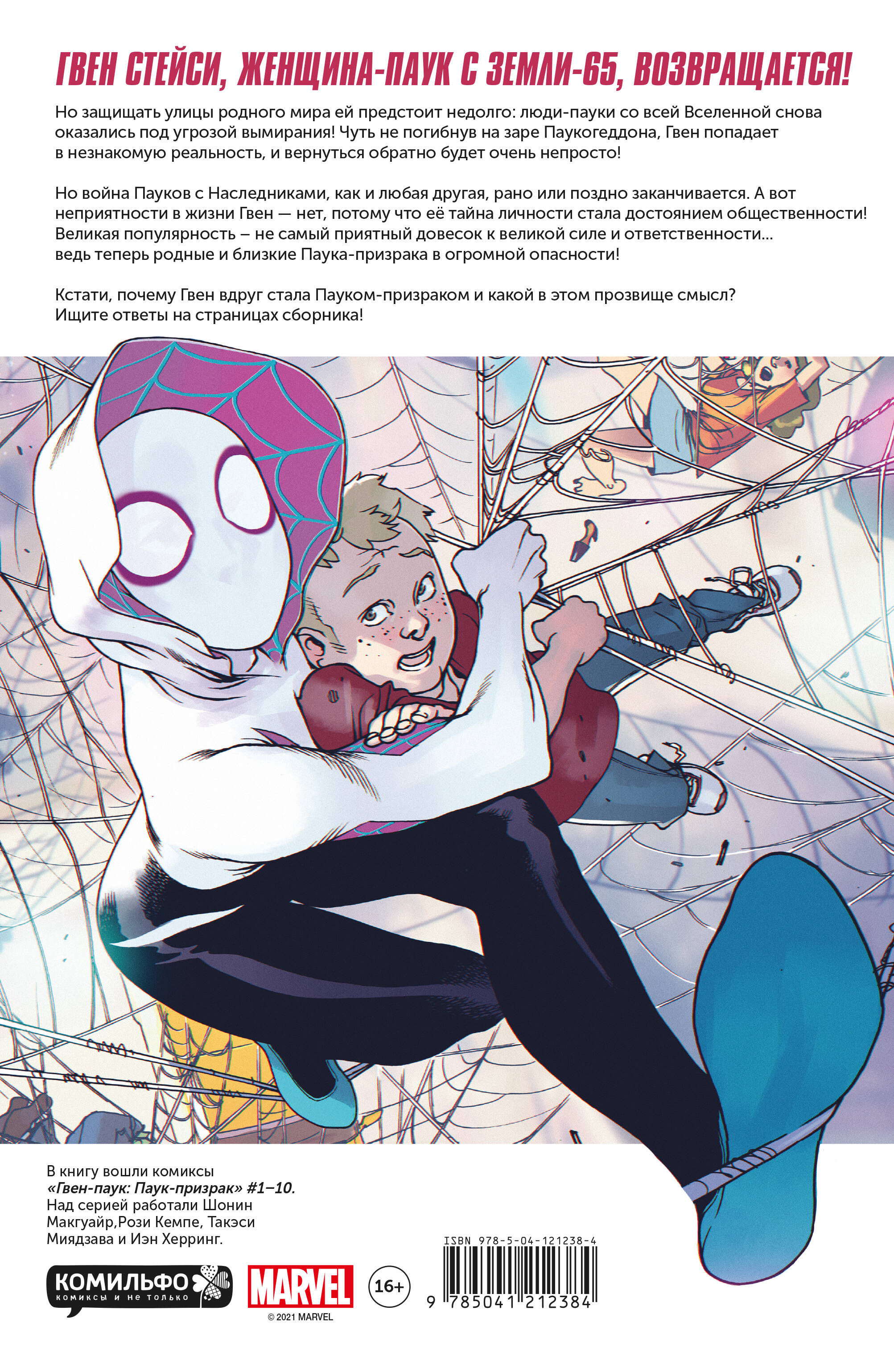 Гвен Стейси, Женщина-паук с Земли-65, возвращается! Но защищать улицы родного мира ей предстоит недолго: люди-пауки со всей Вселенной снова оказались под угрозой вымирания! Чуть не погибнув на заре Паукогеддона, Гвен попадает в незнакомую реальность, и вернуться обратно будет очень непросто! Но война Пауков с Наследниками, как и любая другая, рано или поздно заканчивается. А вот неприятности в жизни Гвен - нет, потому что её тайна личности стала достоянием общественности! Великая популярность - не самый приятный довесок к великой силе и ответственности... ведь теперь родные и близкие Паука-призрака в огромной опасности! Кстати, почему Гвен вдруг стала Пауком-призраком и какой в этом прозвище смысл? Ищите ответы на страницах сборника! В книгу вошли комиксы "Гвен-паук: Паук-призрак" #1-10. Над серией работали Шонин Макгуайр, Рози Кемпе, Такэси Миядзава и Иэн Херринг.| Издательство | ООО "Издательство "Эксмо" |