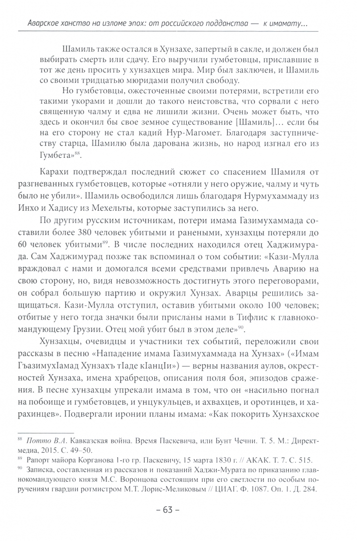 Монография представляет собой научное исследование биографии исторической личности времен Кавказской войны наиба Хаджимурада (1816-1852), воссозданное на широком историческом фоне российского завоевания Дагестана первой половины XIX в. (1801-1852 гг.). В книге использованы практически все сохранившиеся первоисточники той эпохи самых различных типов - от арабоязычных хроник местных авторов и официальной переписки имамата до русских документов, во-енных реляций, горского фольклора и устных историй. Использованы документы архивных фондов центральных и региональных собраний - г. Москвы (РГВИА, ГАРФ, РГАДА, РИМ), г. Санкт-Петербурга (РГИА, ОР РНБ), г. Тбилиси (ЦИАГ), г. Махачкалы (ИИАЭ ДНЦ РАН), многие из которых впервые вводятся в научный оборот. Пересмотр стереотипов советской и современной историографии Кавказской войны позволил иначе взглянуть на противоречивую фигуру Хаджимурада. Исследование претендует на полный портрет легендарного наиба, максимально приближенный к историческому прототипу, Хаджимурада из Хунзаха - отличного от обгцеизвестного фольклорного и литературного.