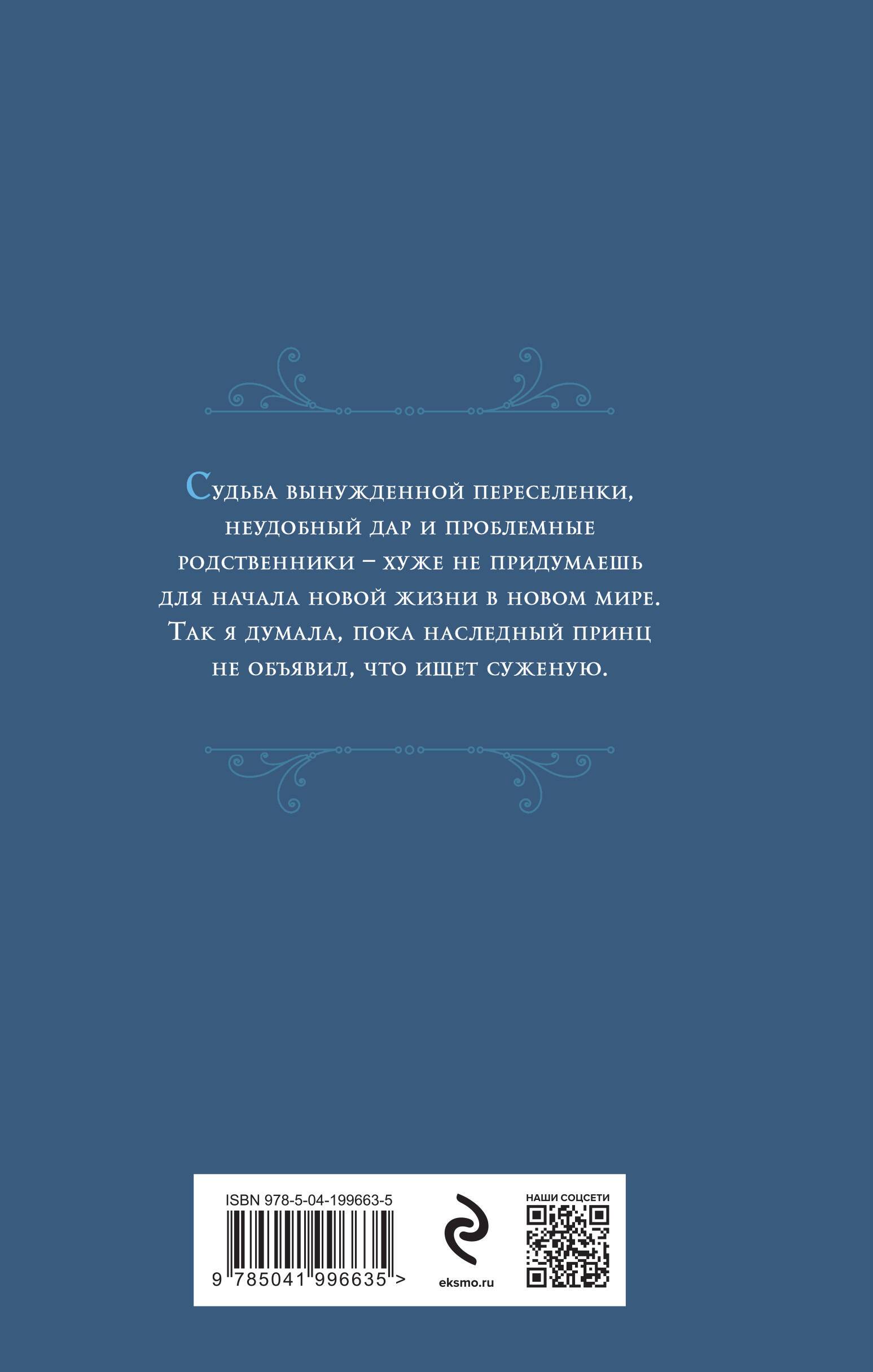 Я очнулась на алтаре, в чужом теле, в ином мире, после того как нелепо погибла в своем. Теперь это мое тело и мой мир. Мир, где всем заправляют маги и драконы, водятся чудовища, а боги коварны и любят спорить на людей. Судьба вынужденной переселенки, неудобный дар и проблемные родственники - хуже не придумаешь для начала новой жизни. Так я думала, пока наследный принц не объявил, что ищет суженую. Я знаю точно, что пройду первый этап отбора, но тогда погибнет моя новая семья. Как избежать обязательной проверки, если сам регент решил разгадать мою тайну? Пять причин приобрести: 1. Любите наблюдать, как наша современница, получив новое тело и еще один шанс, обустраивается в мире с магией. 2. Вам симпатичны умные, харизматичные, в меру язвительные и при этом благородные мужчины. 3. Интересно, как ухаживает за своей избранницей дракон-политик, какие навыки офисного служащего помогут выжить в дворцовом серпентарии и как избавиться от опасного поклонника. 4. Вам нравятся драконы, котики и богини с черным юмором. 5. Предпочитаете драйвовые истории, где есть место напряженным приключениям, верной дружбе и магии настоящей любви.| Издательство | ООО "Издательство "Эксмо" |