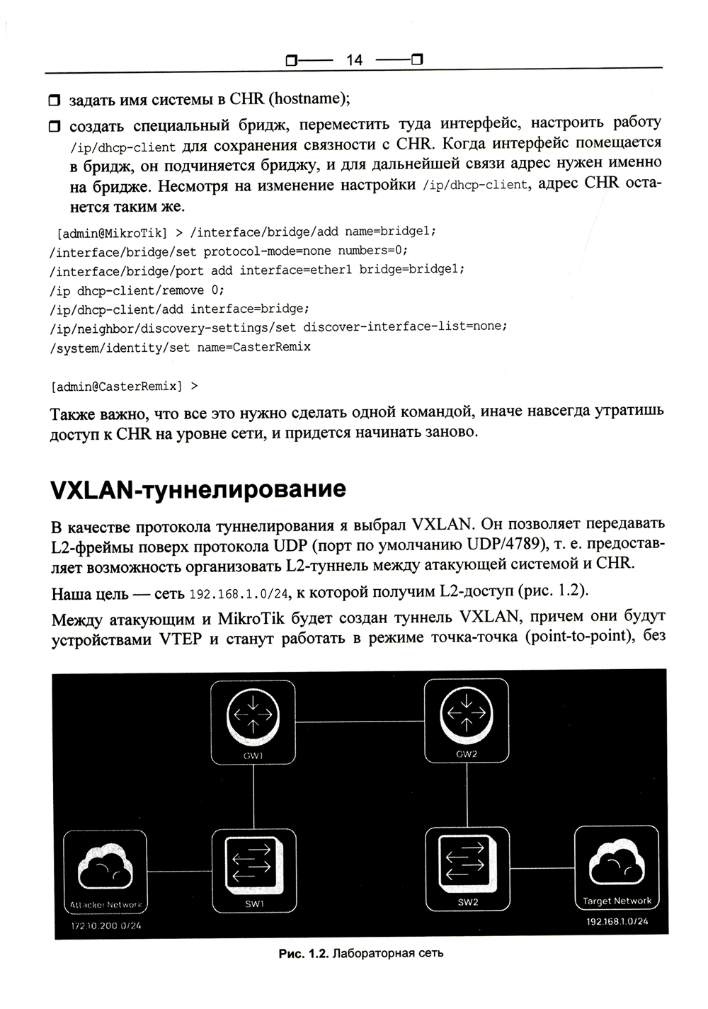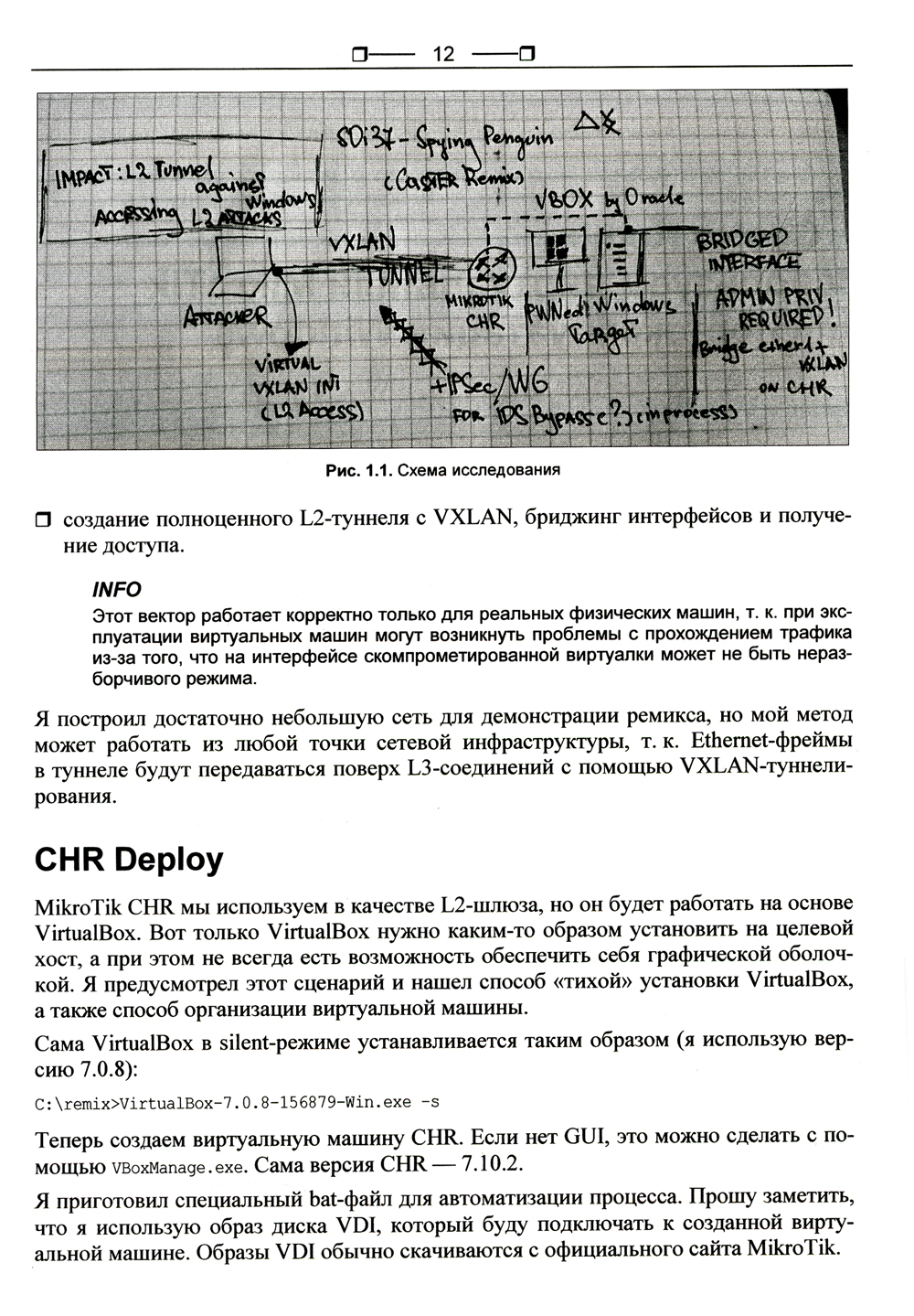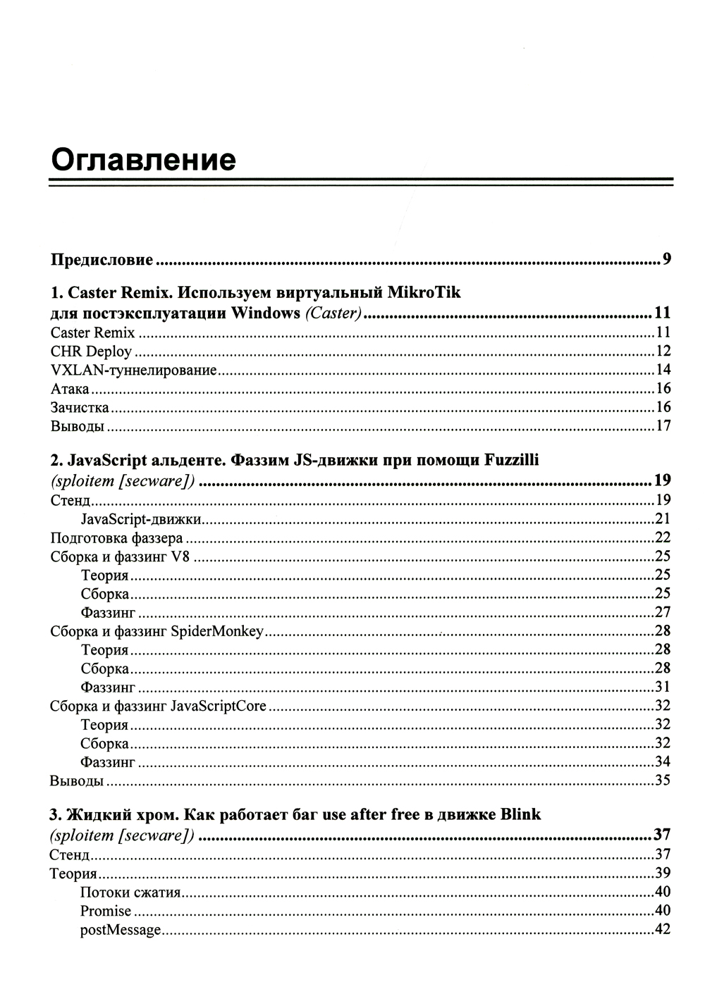 В сборнике избранных статей из журнала «Хакер» описаны способы поиска уязвимостей в сетевом оборудовании MikroTik и использования этого оборудования для постэксплуатации Windows. Показаны методы защиты MikroTik от хакерских атак. Рассказывается об эксплуатации XSS-уязвимостей DOM XSS с помощью Web Messaging, о поиске уязвимостей в приложениях Android на примере Viber и в драйвере AdGuard для Windows. Приводится подробное руководство по атакам NTLM Relay и защите от них. Даны инструкции по фаззингу JS-приложений при помощи Fuzzilli, описана ошибка use after free в движке Blink. Изложены практические способы реализации антиотладки в исполняемых файлах для Linux. Показано, как работает GRE-пивотинг поверх сетевого оборудования. Отдельная глава посвящена практическому способу спуфинга GPS.| Издательство | BHV(БХВ) |