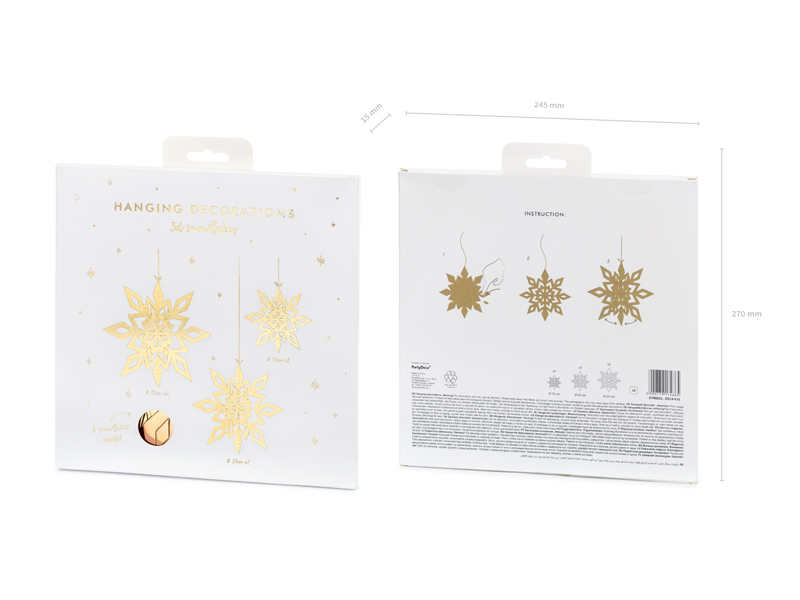 Hanging decoration Snowflakes, gold, 15-25cm (1 pkt / 6 pc.)