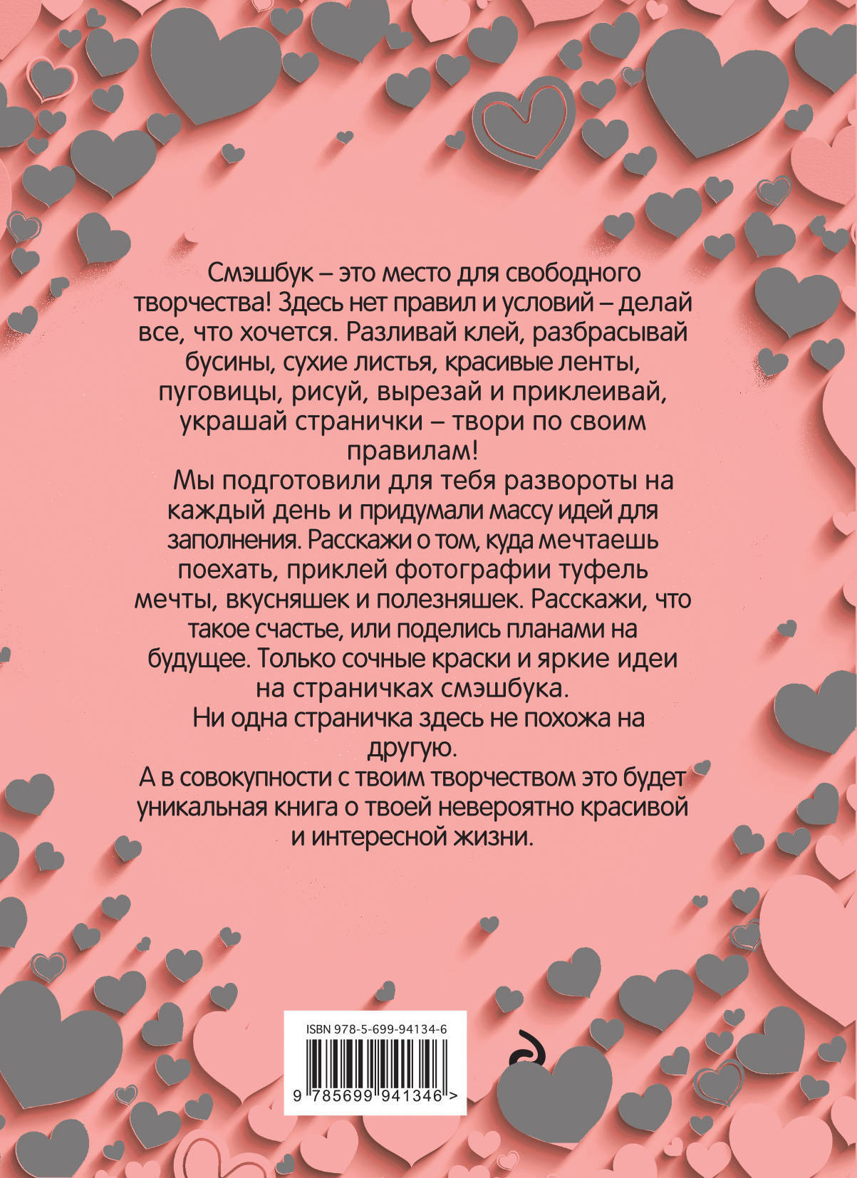 Смэшбук - это место для свободного творчества! Здесь нет правил и условий - делай все, что хочется. Разливай клей, разбрасывай бусины, сухие листья, красивые ленты, пуговицы, рисуй, вырезай и приклеивай, украшай странички - твори по своим правилам! Мы подготовили для тебя развороты на каждый день и придумали массу идей для заполнения. Расскажи о том, куда мечтаешь поехать, приклей фотографии туфель мечты, вкусняшек и полезняшек. Расскажи, что такое счастье, или поделись планами на будущее. Только сочные краски и яркие идеи на страничках смэшбука. Ни одна страничка здесь не похожа на другую. А в совокупности с твоим творчеством это будет уникальная книга о твоей невероятно красивой и интересной жизни.| Издательство | ООО "Издательство "Эксмо" |