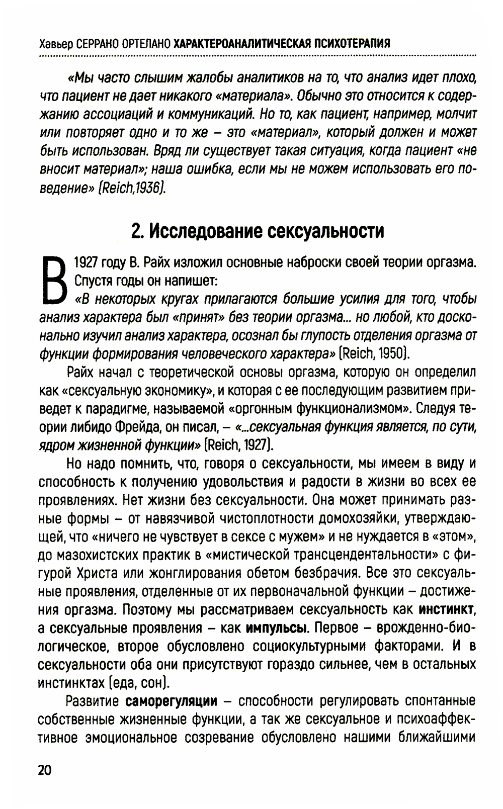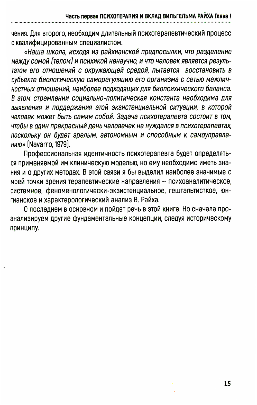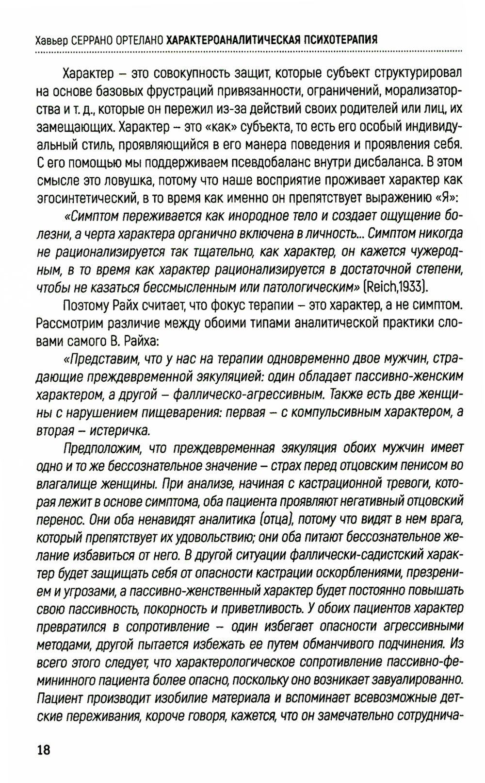 Автор, клинический психолог, сертифицированный психотерапевт, сексолог и оргонотерапевт, с 1982 года занимается клинико-профилактической деятельностью в Валенсии и Барселоне. Тренер, профессор, руководитель и консультант Испанской школы Райхианской психотерапии (ESTER) в Европе и Латинской Америке. В книге дается описание характероаналитической психотерапии -пострейхианского направления Испанской школы, приводятся ее принципы и методические приемы. Рассмотрены различные структуры характера и особенности терапии в каждом случае, обосновывается ряд идей, имеющих практическое и методологическое значение для практикующих специалистов независимо от направления, в котором они работают. Книга будет полезна психологам, студентам, массажистам, телесным практикам, психотерапевтам, психиатрам, психоаналитикам и всем тем, кто заинтересован или работает с использованием телесно-ориентированных методов.| Издательство | Изд.Базенков И.Л. |