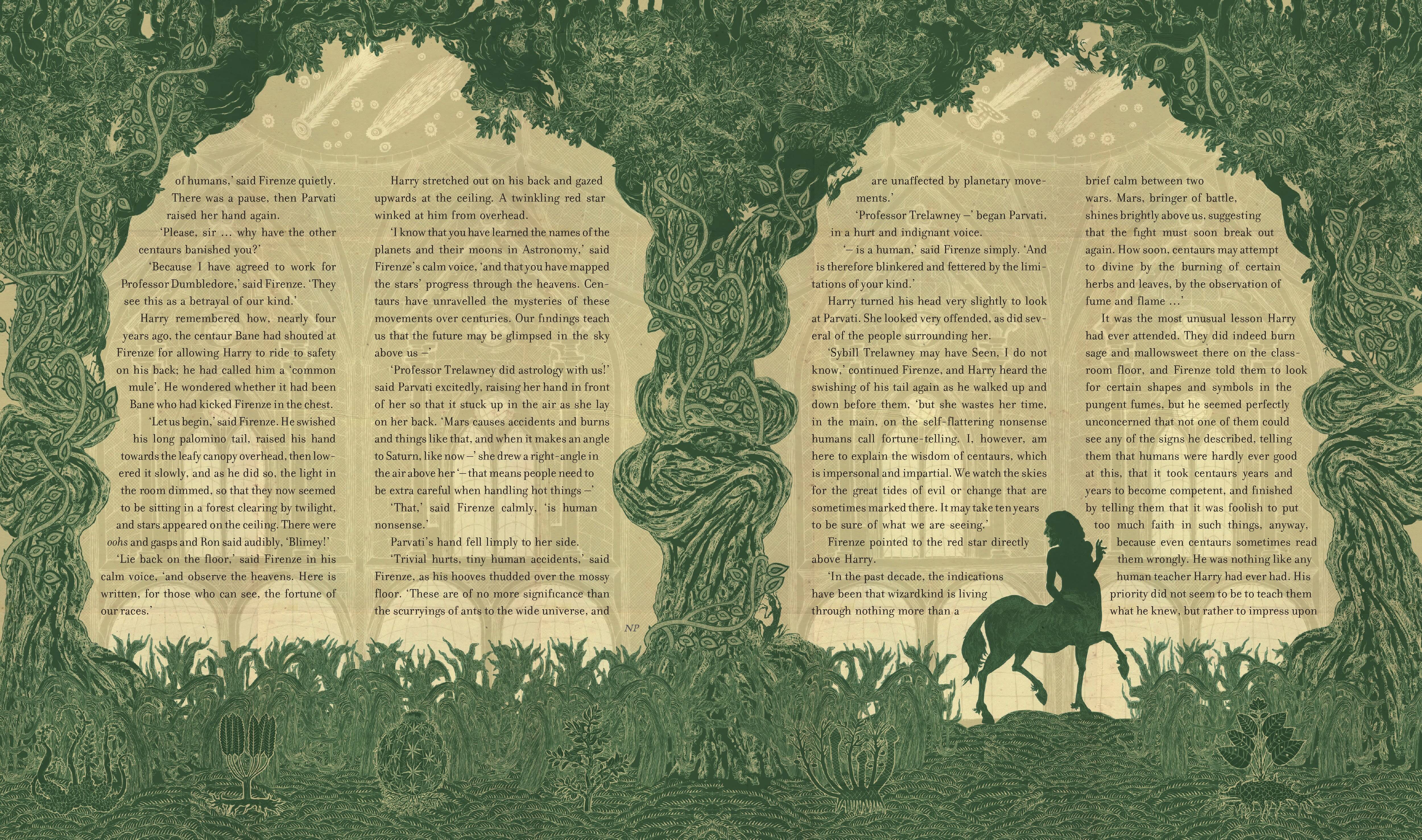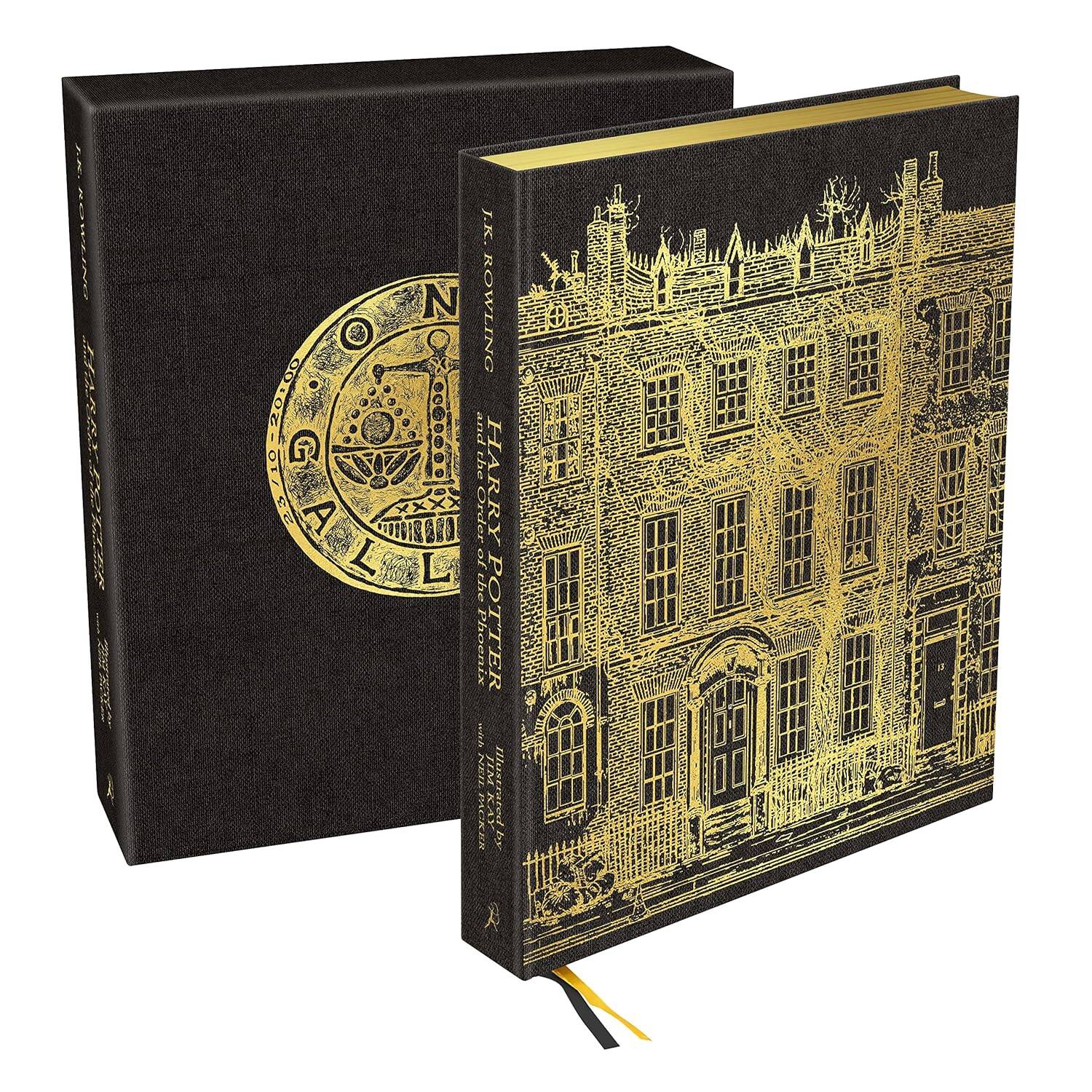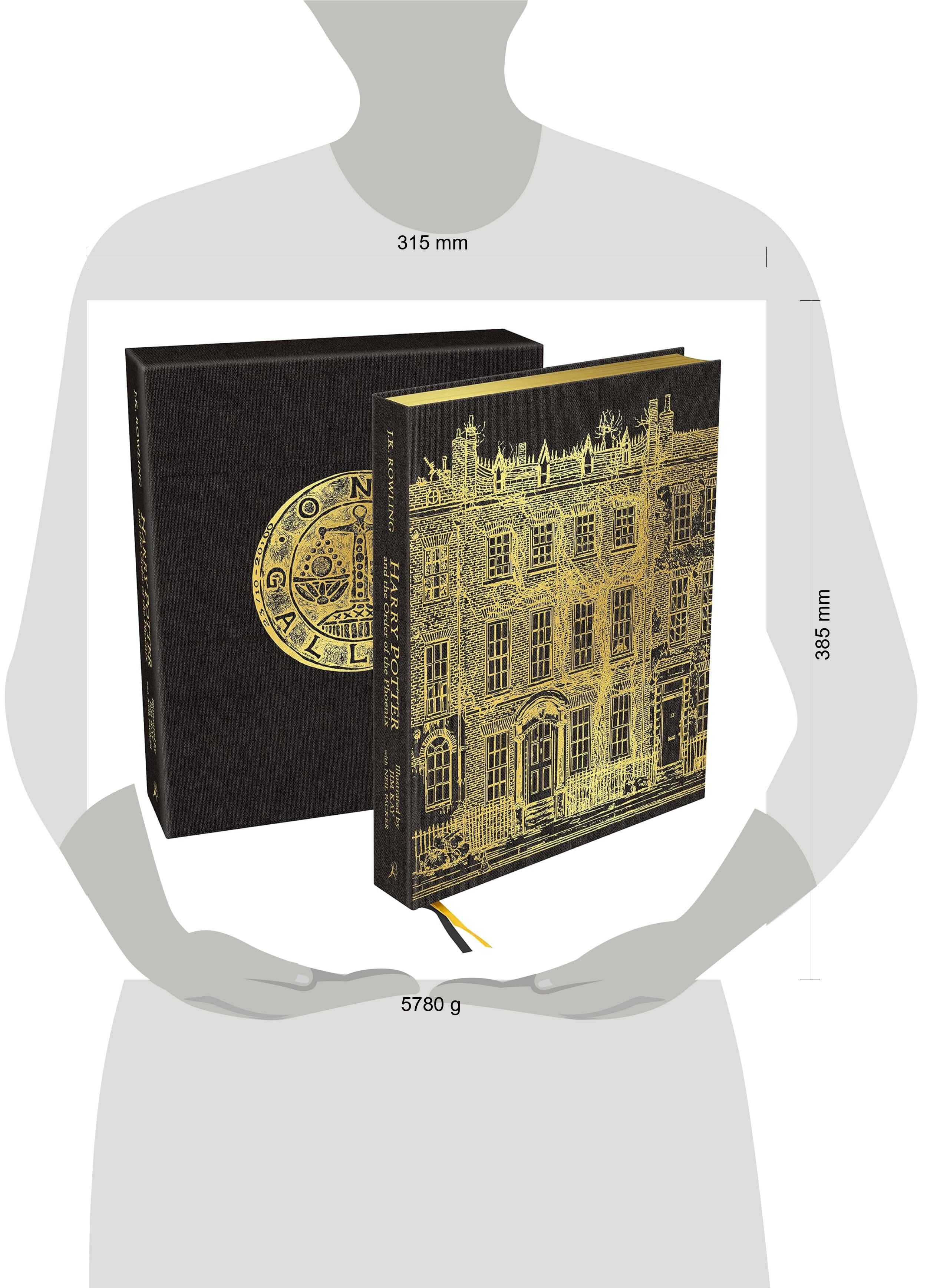 Prepare to be spellbound by the stunning illustration inside this new collector's edition of Harry Potter and the Order of the Phoenix. Troubled times have come to Hogwarts in a year filled with secrets, subterfuge and suspicion. The deliciously dark fifth instalment of Jim Kay's inspired reimagining of J.K. Rowling's Harry Potter series is an epic artistic achievement, featuring over 160 illustrations in an astonishing range of visual styles. Now an exciting new collaboration brings together two virtuoso artistic talents, as Kate Greenaway Medal winner Jim Kay is joined by acclaimed guest illustrator Neil Packer, winner of the 2021 BolognaRagazzi Award for non-fiction. Jim Kay depicts J.K. Rowling's wizarding world with the dazzling artistic alchemy fans around the globe have come to know and love, perfectly complemented by Neil Packer's own unique and eclectic illustrations, skilfully woven into the heart of the story. Breathtaking scenes, iconic locations and unforgettable characters await inside - Luna Lovegood, Professor Umbridge, Grawp the giant, and many more - as Harry Potter and Dumbledore's Army prepare for the coming battle against Lord Voldemort. This beautiful, deluxe edition features an opulent page size and intricate gold foiled line art set on a jet-black cloth cover and slipcase; gilt edges on premium grade paper; head and tail bands and two ribbon markers. Each copy is also accompanied by an exclusive fold-out souvenir poster to keep and enjoy. This is the ultimate must-have edition for any Potter fan, collector or bibliophile. Приготовьтесь быть очарованными потрясающими иллюстрациями в новом коллекционном издании книги "Гарри Поттер и Орден Феникса". В Хогвартсе наступили смутные времена, год наполнен тайнами, уловками и подозрениями. Восхитительно темная пятая часть вдохновленного переосмысления Джимом Кеем серии книг Роулинг о Гарри Поттере - это грандиозное художественное достижение, включающее более 160 иллюстраций в поразительном разнообразии визуальных стилей. Теперь захватывающее новое сотрудничество объединяет два виртуозных художественных таланта: к обладателю медали Кейт Гринуэй Джиму Кею присоединился известный приглашенный иллюстратор Нил Пэкер, лауреат премии BolognaRagazzi Award 2021 в области документальной литературы. Джим Кей изображает Волшебный мир Дж. Роулинг с ослепительной художественной алхимией, который знают и любят поклонники по всему миру, все это прекрасно дополняется собственными уникальными и эклектичными иллюстрациями Нила Пэкера, искусно вплетенными в сердцевину истории. Захватывающие дух сцены, культовые места и незабываемые персонажи - Луна Лавгуд, профессор Амбридж, великан Грох и многие другие ждут вас внутри, пока Гарри Поттер и армия Дамблдора готовятся к грядущей битве против лорда Волан-де-Морта. Это прекрасное издание отличается роскошным размером страницы и замысловатым штриховым рисунком с золотой фольгой на угольно-черной тканевой обложке и в футляре; позолоченные края на бумаге высшего сорта; повязки на голове и хвосте и два маркера-ленты. Каждая копия также сопровождается эксклюзивным раскладывающимся сувенирным плакатом, который можно сохранить и наслаждаться. Это обязательное издание для любого фаната Поттера, коллекционера или библиофила. гарри поттер, книга гарри поттер, книга гарри поттера, джоан роулинг, гарри поттер и орден феникса