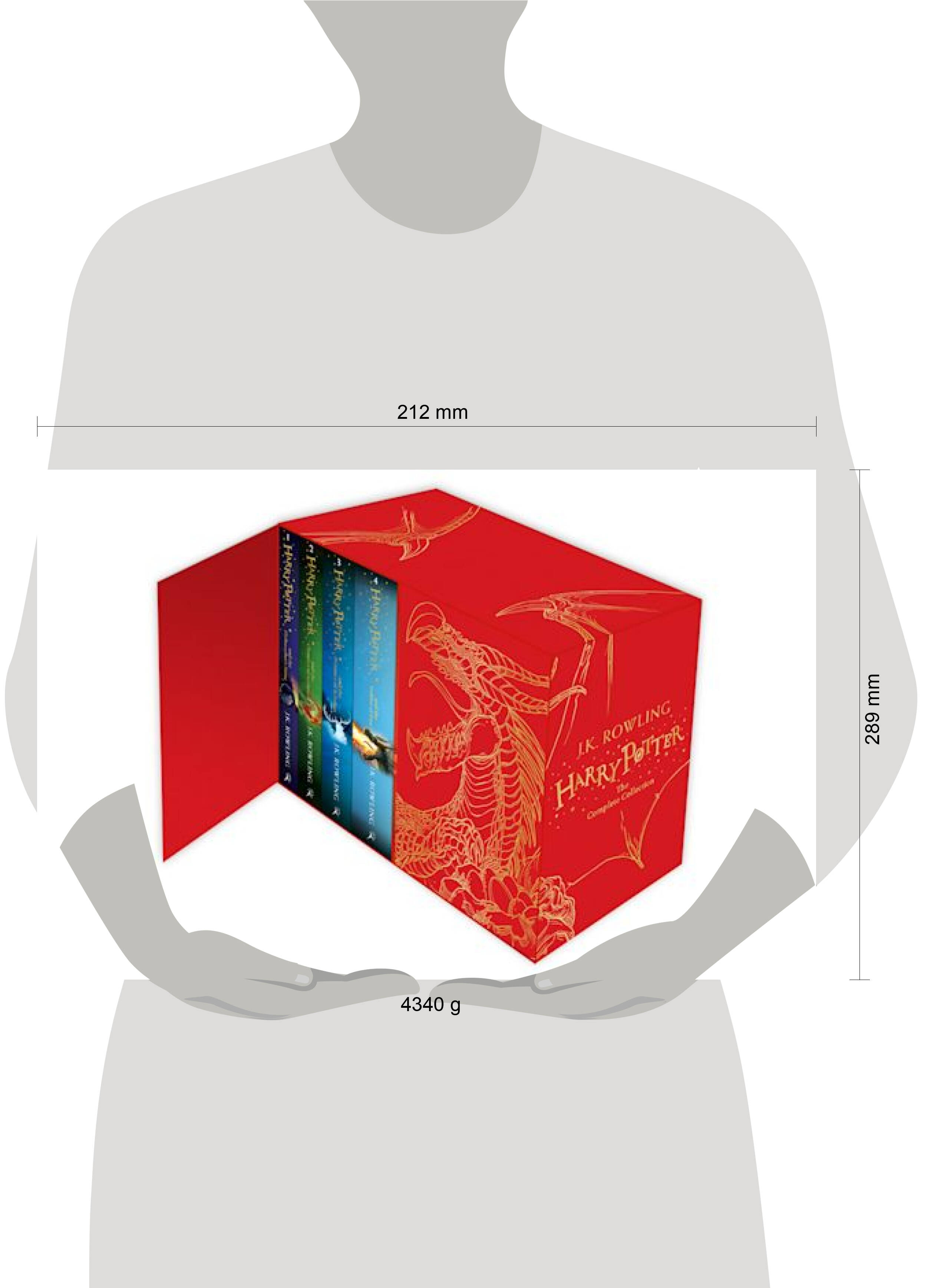 Escape to Hogwarts with the unmissable series that has sparked a lifelong reading journey for children and families all over the world! Harry Potter has never even heard of Hogwarts when letters start dropping on the doormat at number four, Privet Drive. Addressed in green ink on yellowish parchment with a purple seal, they are swiftly confiscated by his grisly aunt and uncle. Then, on Harry's eleventh birthday, a great beetle-eyed giant of a man called Rubeus Hagrid bursts in with some astonishing news - Harry Potter is a wizard, and he has a place at Hogwarts School of Witchcraft and Wizardry. The magic starts here … These irresistible editions are presented in a striking scarlet box decorated with gold foiling, showing Harry on his broomstick flying past a fiery Hungarian Horntail dragon. This set is the essential Harry Potter - a must-have for every child at the start of the most magical reading adventure. These are books to be treasured and read time and time again, the greatest children's story of all time. Перенеситесь в Хогвартс с этой серией книг, которые нельзя пропустить, и которые стали отправной точкой для чтения длиной во всю жизнь для детей и семей со всего мира! Гарри Поттер ни разу не слышал о Хогвартсе, когда письма оттуда начали сыпаться на коврик у двери дома номер четыре по Тисовой улице. Конверты на желтом пергамента, с адресом зелеными чернилами и с пурпурной печатью быстро конфискуются его грозными дядей и тетей. Но потом, на одиннадцатый день рождения Гарри, к ним врывается великан с глазами-жуками по имени Рубеус Хагрид и сообщает потрясающую новость: Гарри Поттер - волшебник, и ему положено место в Школе Чародейства и Волшебства Хогвартс. Волшебство начинается здесь... Эти потрясающие издания представлены в яркой алой коробке, украшенной золотой фольгой, на которой изображен Гарри на своей метле, летящий мимо огненной венгерской хвостороги. Это набор, который обязательно должен быть у каждого ребенка в начале его путешествия, полном волшебства. Это книги, которые нужно беречь и перечитывать снова и снова, это величайшая детская история всех времен. гарри поттер, книга гарри поттер, книга гарри поттера, джоан роулинг, Гарри Поттер и философский камень, Гарри Поттер и Тайная комната, Гарри Поттер и узник Азкабана, Гарри Поттер и Кубок огня, Гарри Поттер и Орден Феникса, Гарри Поттер и Принц-полукровка и Гарри Поттер и Дары смерти, комплект книг о гарри поттере
