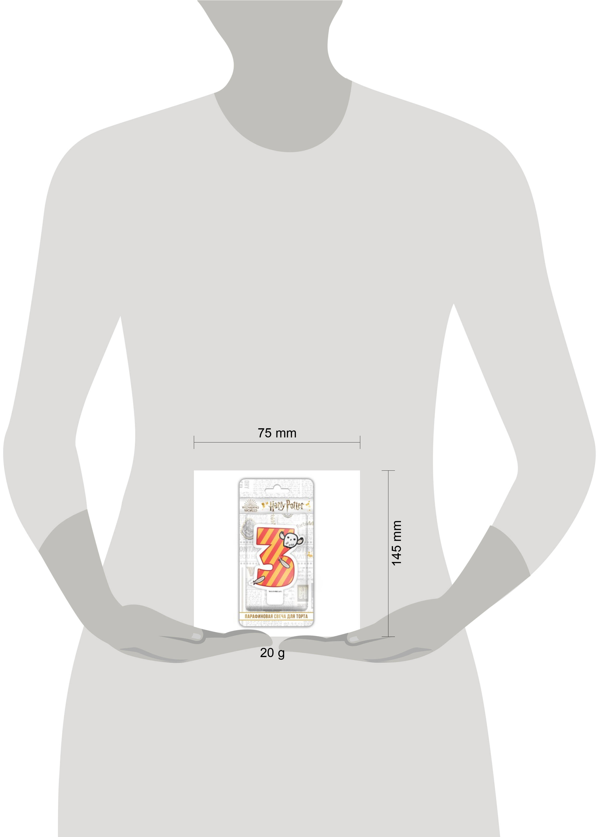 Harry Potter. Парафиновая свеча в торт (цифра 3 с рисунком), в блистере (чиби)