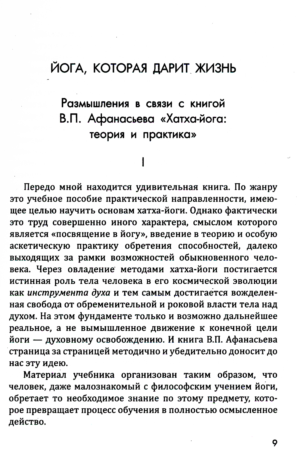 Новая книга В.П. Афанасьева посвящена хатха-йоге, древнеиндийскому эклектическому учению о психофизическом совершенстве. Уходящая историческими корнями в тантрическую практику телесного благоденствия (кайя-садхана), она вобрала в себя живительные элементы алхимии (расаяна), шиваизма, шактизма (в виде доктрины кундалини), адвайта-веданты и некоторых других школ эзотерического толка. В последовательной форме, сознательно избегая экскурсов в историю хатха-йоги и трудных для понимания читателя философских её аспектов, автор, страница за страницей, раскрывает содержание хатха-йоги с неизменным акцентом на её конечные духовные цели - Самопознание. Книга вводит читателя в интереснейший мир уникальной психофизической культуры, заслуженно получившей мировое признание, и щедро делится с читателем своим опытом тесного многолетнего взаимодействия с ней, как в качестве исследователя, так и практика. Многие вопросы освещаются автором с неожиданных позиций, вопреки устоявшимся представлениям о хатха-йоге, широко поддерживаемым большинством современных руководств данного профиля. Теоретическая часть, ёмкая и многогранная, гармонично сочетается с практической частью, вобравшей в себя богатый и качественно проиллюстрированный материал. Книга написана доступным и убедительным языком, настраивая читателя на дальнейшее изучение и освоение предмета. Адресуется читателю, интересующемуся психофизическим и духовным развитием. Книга также будет полезна всем, кто имеет отношение к преподаванию йоги.