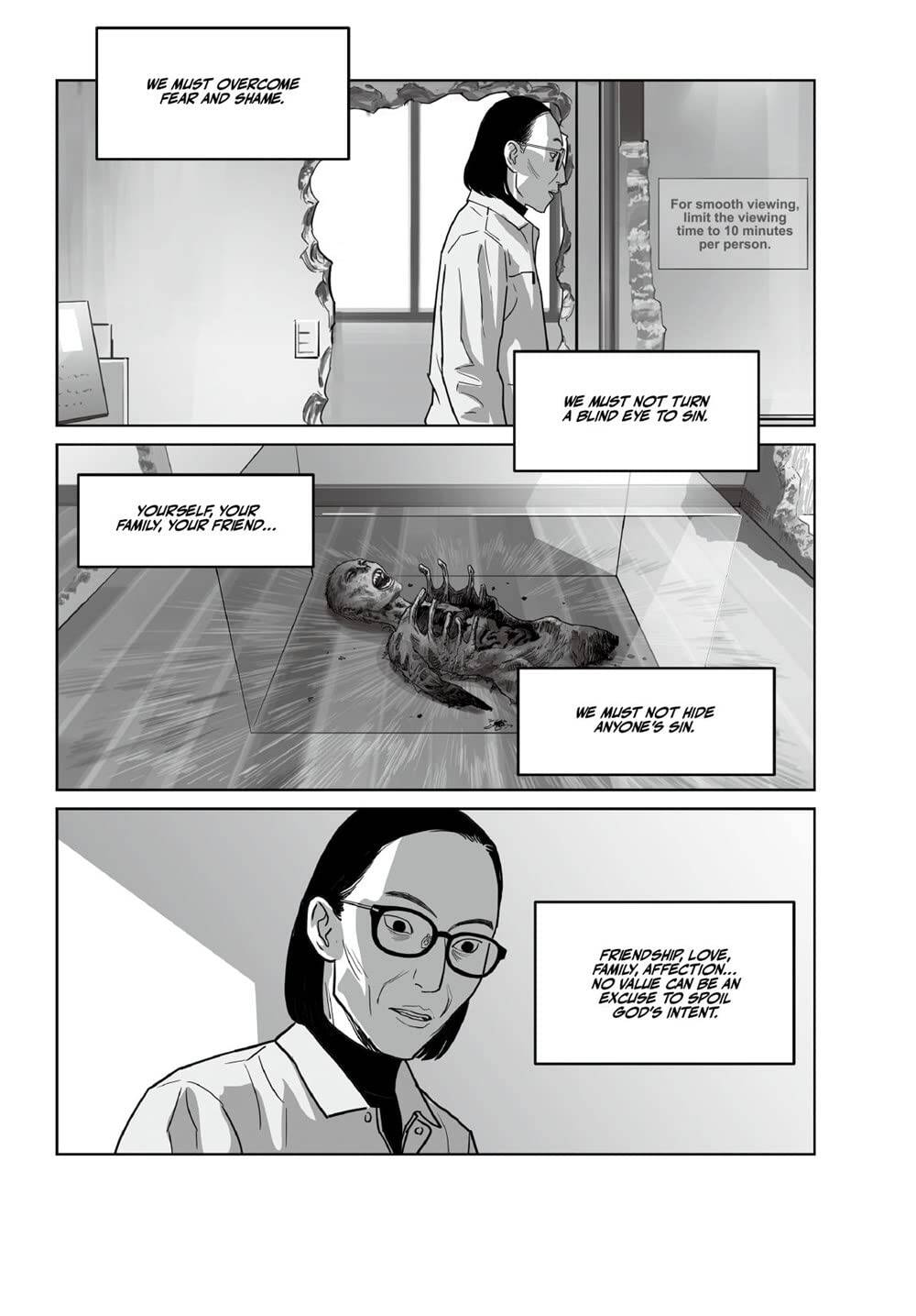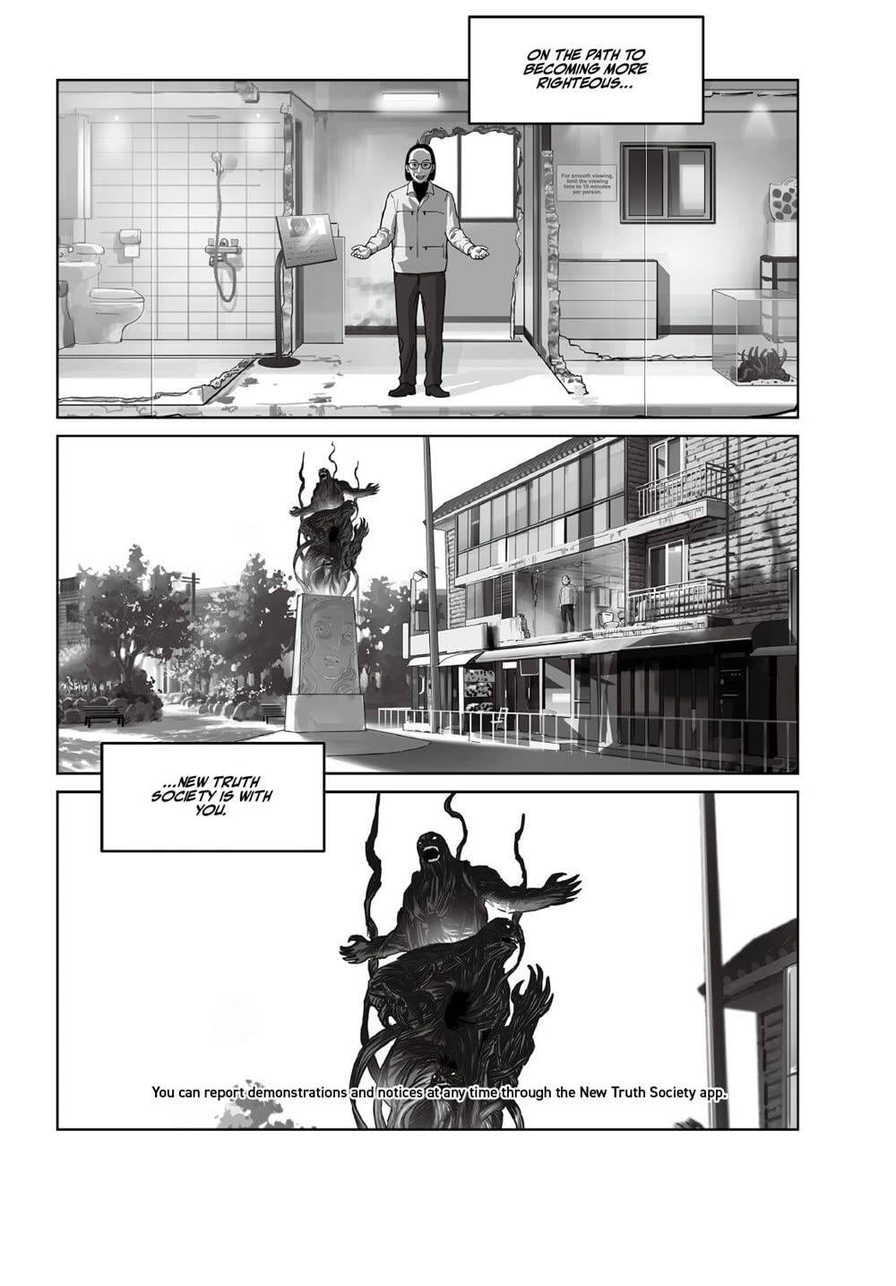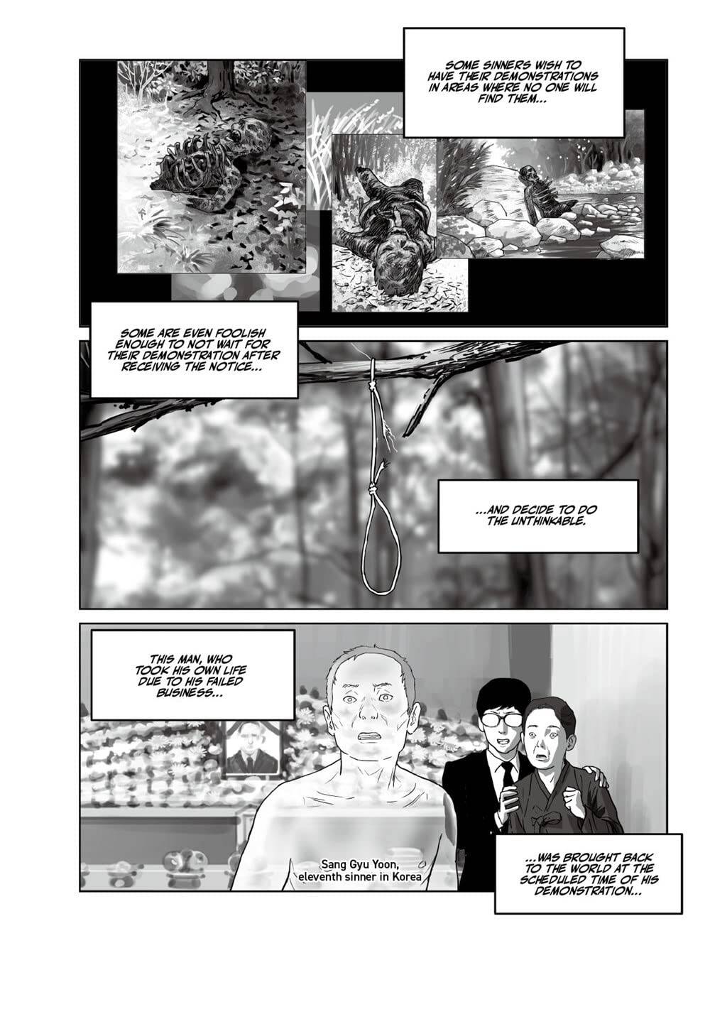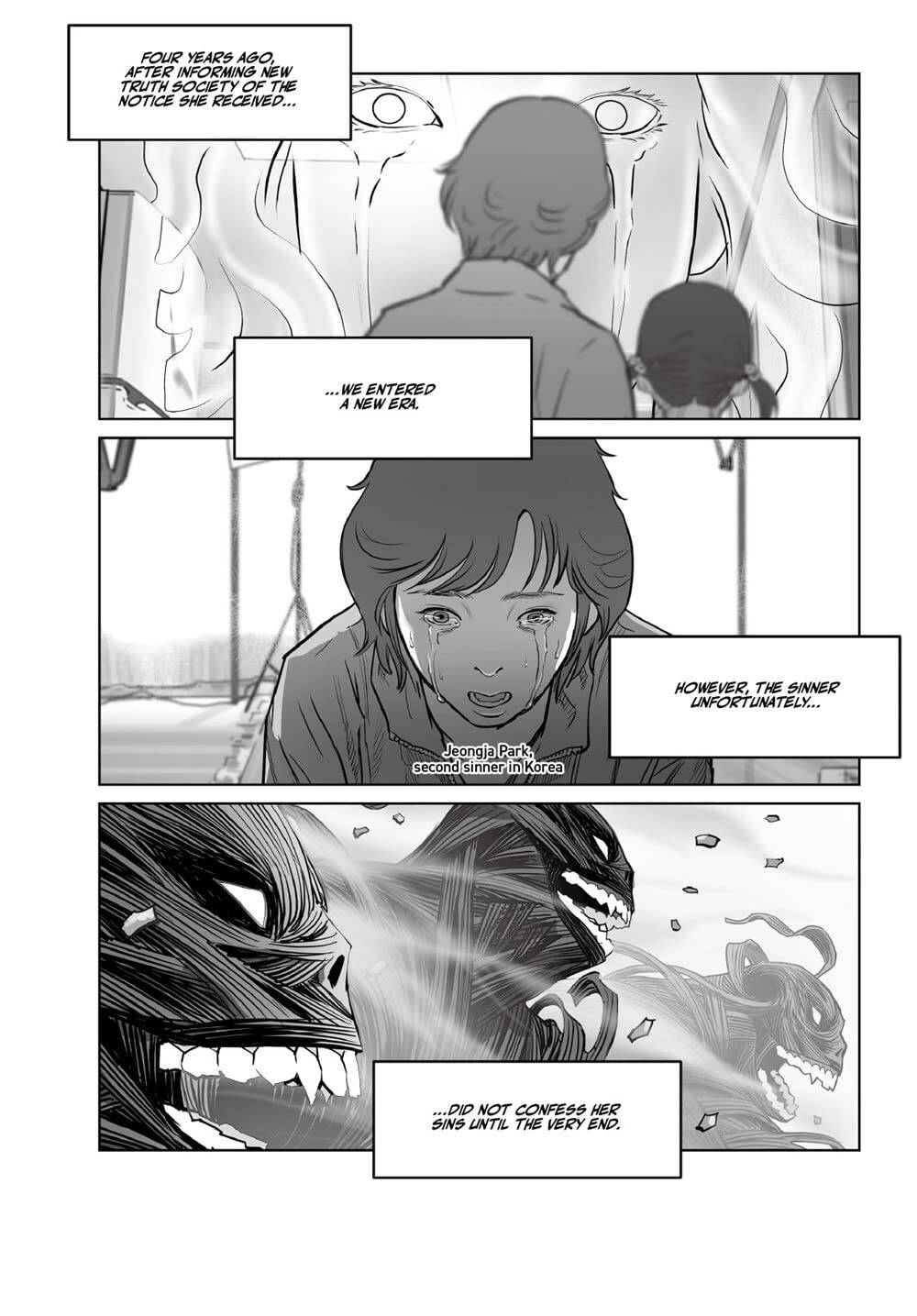 Terror intensifies as the truth behind a series of deadly and mysterious attacks is revealed... Death, murder, and hysteria. The reality of hell on earth has reached new heights following numerous public massacres. The fear-striken public begin to reexamine their lives, while others find refuge in cults, religious dogma, and internet hearsay. Does there exist salvation from this sentence of death or is the notice an irrefutable condemnation? With horror befalling the chairmain, what future lies for the New Truth Society? And who or what is responsible for creating this nightmarish world? It is time to make amends and face the mistakes of the past-atone. Available for the first time in English! The thrilling conclusion to the provocative horror of The Hellbound by Yeon Sang-Ho, director of the internatonal hit and cult favorite film Train to Busan and cartoonist Choi Gyu-Seok. Террор усиливается по мере того, как раскрывается правда о серии смертоносных и загадочных нападений... Смерть, убийство и истерия. Реальность ада на земле достигла новых высот после многочисленных публичных убийств. Охваченная страхом общественность начинает пересматривать свою жизнь, в то время как другие находят убежище в культах, религиозных догмах и слухах в Интернете. Существует ли спасение от этого смертного приговора или это предупреждение является неопровержимым осуждением? Учитывая ужас, постигший председателя, какое будущее ждет Общество Новой Истины? И кто или что несет ответственность за создание этого кошмарного мира? Пришло время исправить ошибки прошлого и признать их искупление. Впервые доступно на английском языке! Захватывающее завершение провокационного ужастика "Преисподняя" У Сан Хо, режиссера международного хита и культового фильма "Поезд в Пусан" и карикатуриста Чхве Гю Сока.