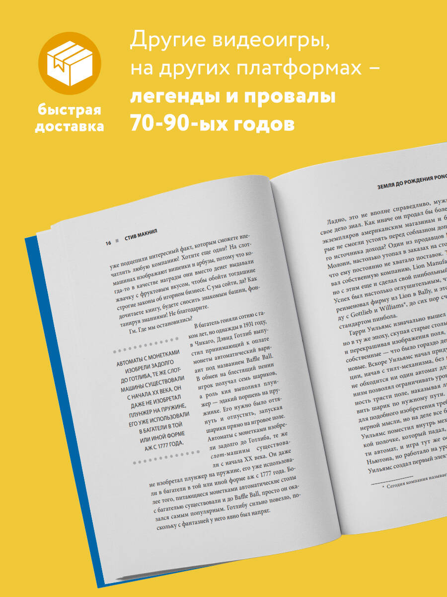 Захватывающая история золотого века видеогр! Перенесемся в конец 70-х годов. Это время диско, «Нового Голливуда» и первых персональных компьютеров. А еще это время рождения видеоигр! Для современного игрока первые игры, вроде Pong или Space Invaders, могут показаться причудливыми и наивными. В них нет головокружительного экшена, а сюжет предельно прост. И хорошо, если он вообще там есть! Но это не умаляет их уютной ламповости, за которую их до сих пор любят игроки по всему миру. Стив Макнил - телеведущий и один из основателей популярного шоу о классических видеограх Dara O'Briain's Go 8 Bit, преданный фанат игр 70-90-х. С ним вы отправитесь в путешествие по золотой эре видеоигр и узнаете, как создавались легендарные шедевры, а также игры, которые в конце концов оказались грандиозным провалом. Нажмите «Старт», и мы начинаем!| Издательство | ООО "Издательство "Эксмо" |