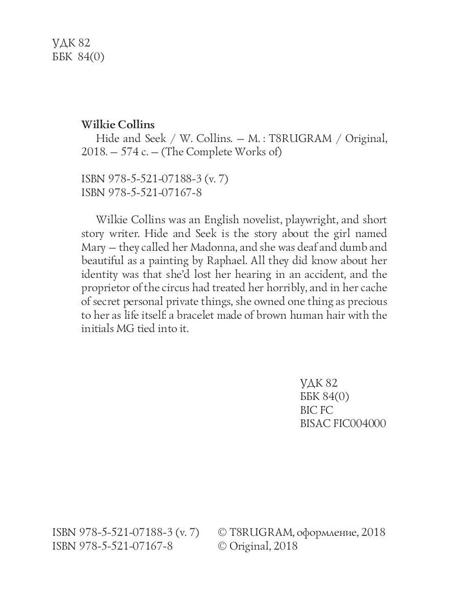Wilkie Collins was an English novelist, playwright, and short story writer. Hide and Seek is the story about the girl named Mary - they called her Madonna, and she was deaf and dumb and beautiful as a painting by Raphael. All they did know about her identity was that she'd lost her hearing in an accident, and the proprietor of the circus had treated her horribly, and in her cache of secret personal private things, she owned one thing as precious to her as life itself: a bracelet made of brown human hair with the initials MG tied into it.