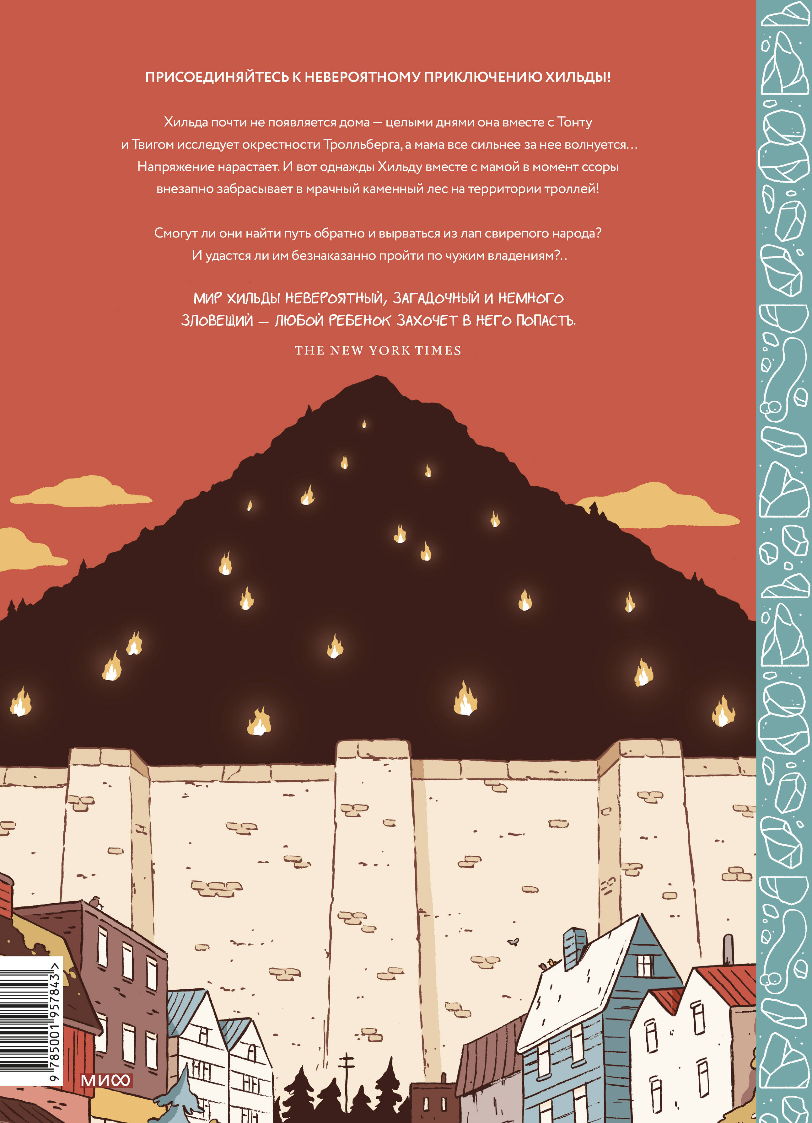 Хильда почти не появляется дома - целыми днями она вместе с Тонту и Твигом исследует окрестности Тролльберга, а ее мама всё сильнее за нее волнуется... Напряжение нарастает, когда однажды Хильду вместе с мамой в момент ссоры внезапно забрасывает в загадочный и мрачный каменный лес - на землю троллей! Смогут ли они вдвоем найти путь обратно и вырваться из лап свирепого народа? И можно ли безнаказанно пройти по чужим владениям? Присоединяйтесь к новому захватывающему приключению Хильды! Фишки книги: - Самое закрученное приключение Хильды. - В 2018 году Netflix начнет транслировать мультсериал по мотивам комикса. Для кого эта книга: Для детей 8-12 лет и всех любителей комиксов. Для взрослых, которые неравнодушны к детской иллюстрации и скандинавской мифологии. О серии: Серия комиксов "Хильдафолк" (от исландского Huldufólk, где huldu - "скрывающиеся, тайные" и fólk - "народ", "народец", так в исландской мифологии называют эльфов) рассказывает о приключениях скандинавской девочки Хильды, которая дружит с гномами, троллями и другими странными существами. Хильда живет с мамой и своим домашним питомцем Твигом - ручной лисой с рогами. Люк Пирсон создал в комиксах уникальный мир, населенный странными существами из скандинавской мифологии.