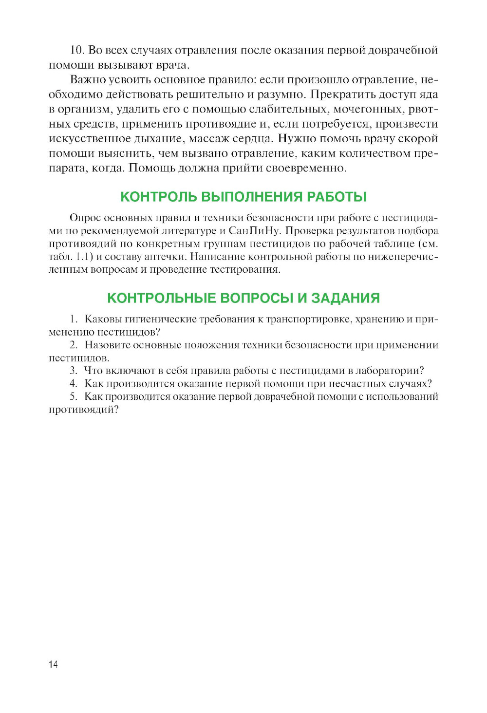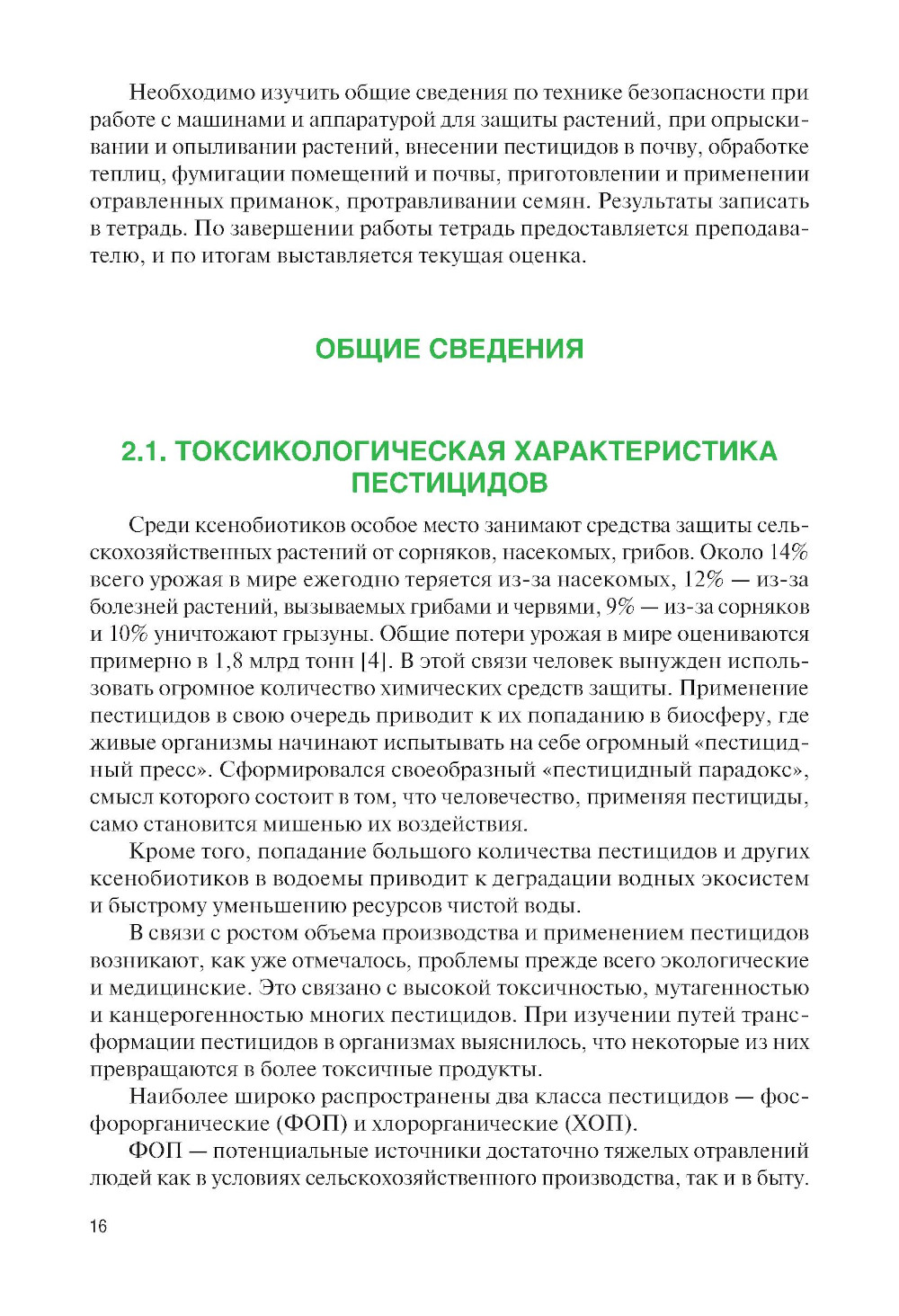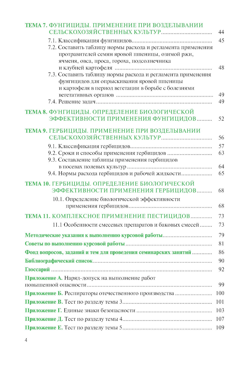 Рассмотрены основные правила и техника безопасности при работе с пестицидами, индивидуальные средства защиты работающих с ядохимикатами, классификация пестицидов. В основу пособия вошел анализ применения при возделывании сельскохозяйственных культур и определение биологической эффективности применения инсектицидов, фунгицидов и гербицидов. В пособии освещены методологические основы выполнения лабораторных работ, приведены фонды заданий и тесты по контролю знаний обучающихся. Соответствует ФГОС ВО последнего поколения. Для студентов бакалавриата и магистратуры, обучающихся по направлениям «Агрономия», «Агрохимия и агропочвоведение».