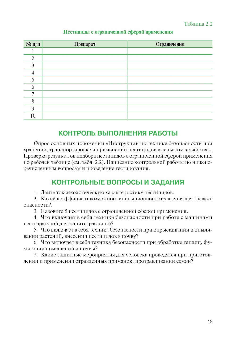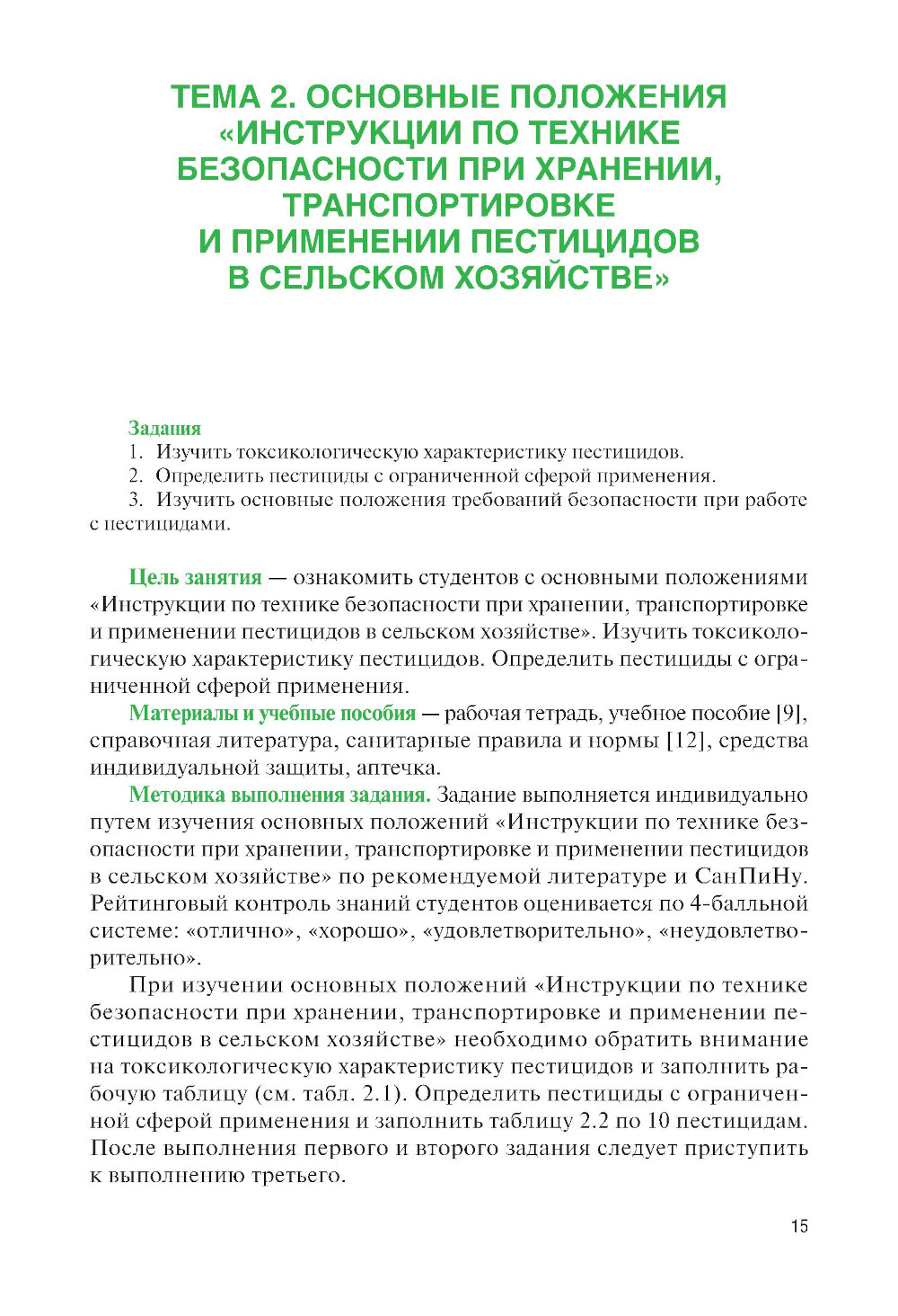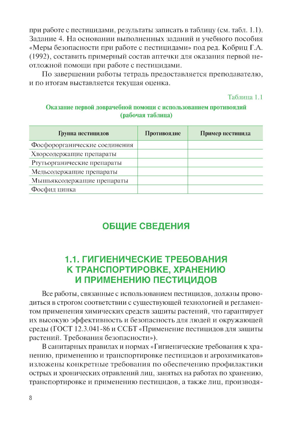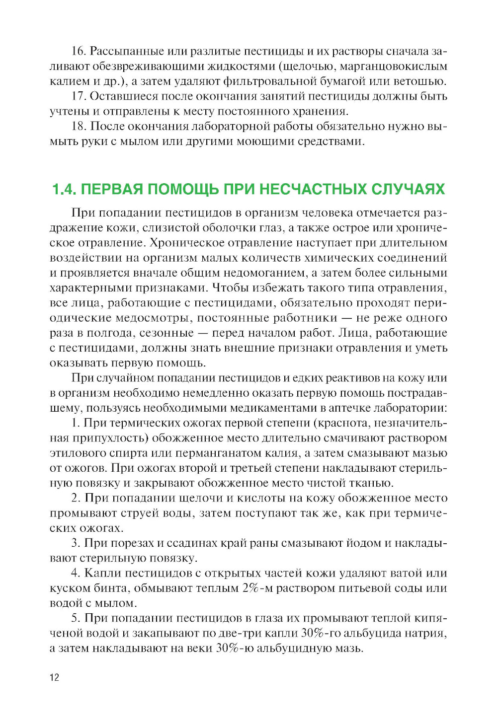 Рассмотрены основные правила и техника безопасности при работе с пестицидами, индивидуальные средства защиты работающих с ядохимикатами, классификация пестицидов. В основу пособия вошел анализ применения при возделывании сельскохозяйственных культур и определение биологической эффективности применения инсектицидов, фунгицидов и гербицидов. В пособии освещены методологические основы выполнения лабораторных работ, приведены фонды заданий и тесты по контролю знаний обучающихся. Соответствует ФГОС ВО последнего поколения. Для студентов бакалавриата и магистратуры, обучающихся по направлениям «Агрономия», «Агрохимия и агропочвоведение».