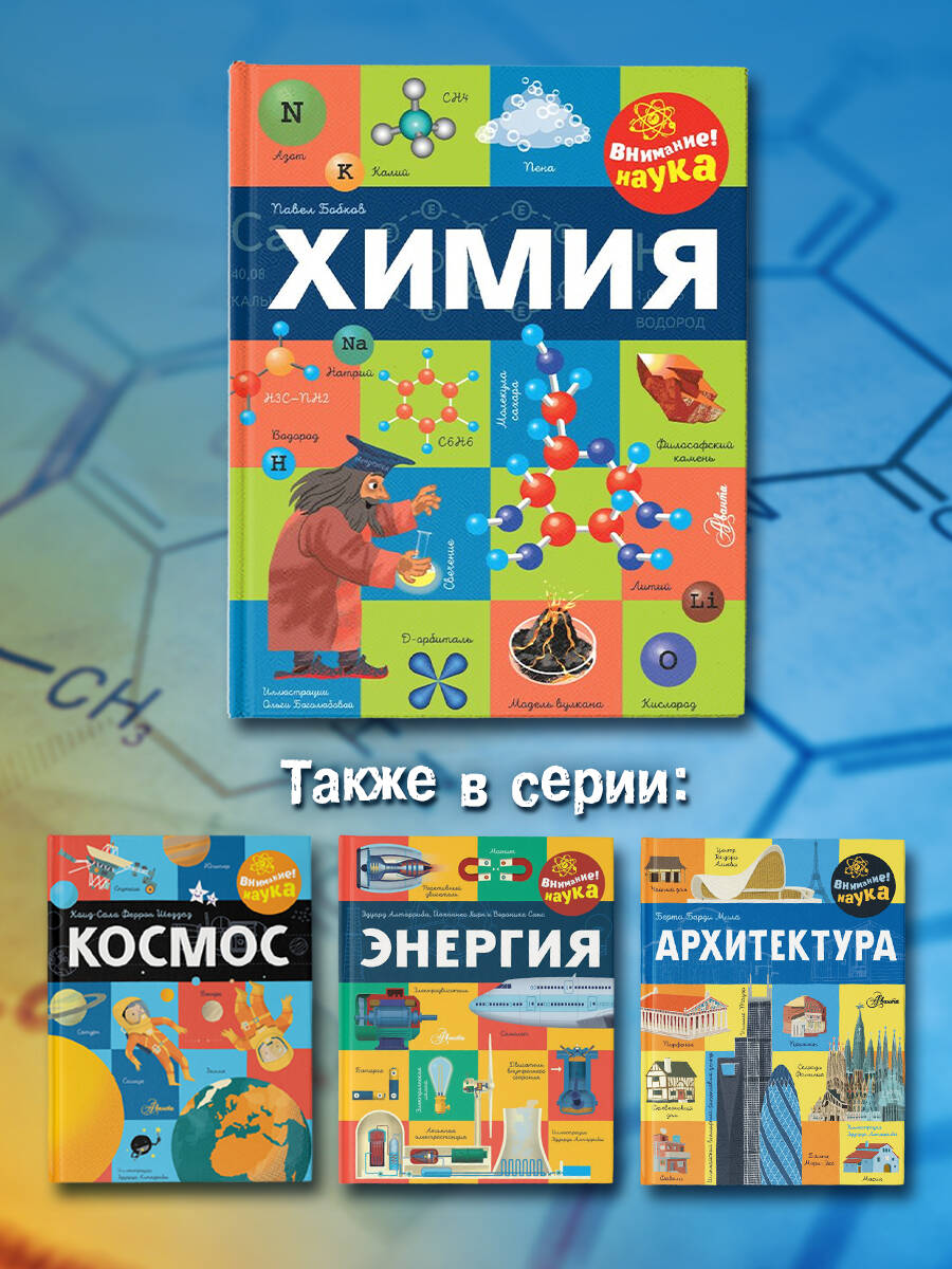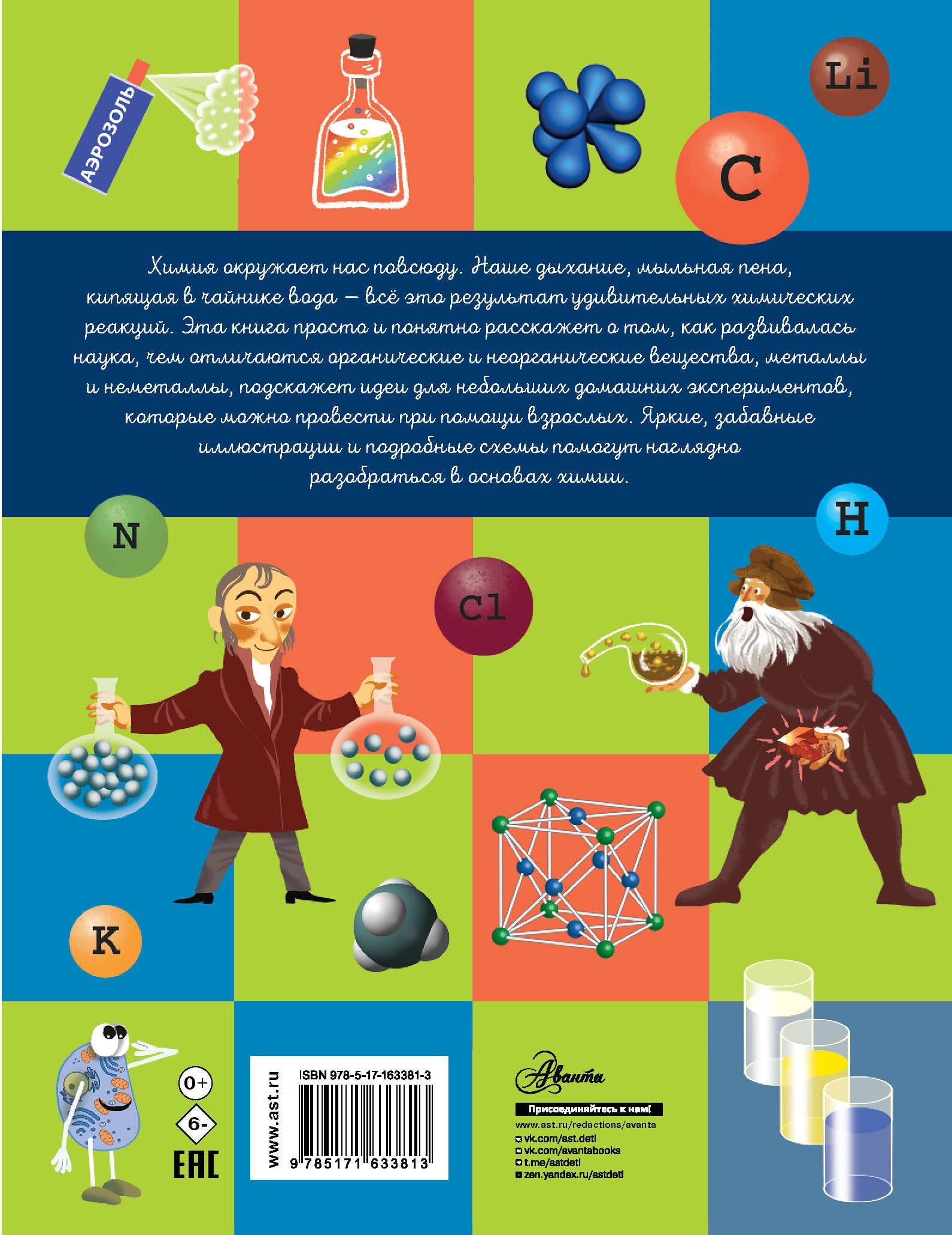 Каждый день мы с вами наблюдаем множество химических реакций. Кипение воды, туман, пена от мыла и даже наше дыхание - всё это результат взаимодействия химических элементов. Из этой книги вы сможете узнать, что такое вещество, какими бывают химические реакции и как их распознать в окружающем мире. Основы химии изложены в простой и увлекательной форме, а яркие и подробные иллюстрации наглядно объяснят законы химии и помогут разобраться в химических элементах. Книга станет отличным подарком для маленького исследователя, поможет подготовиться к школьному курсу химии, а также подскажет идеи для опытов, экспериментов и школьных проектов. Для среднего школьного возраста.| Издательство | Издательство "АСТ" |