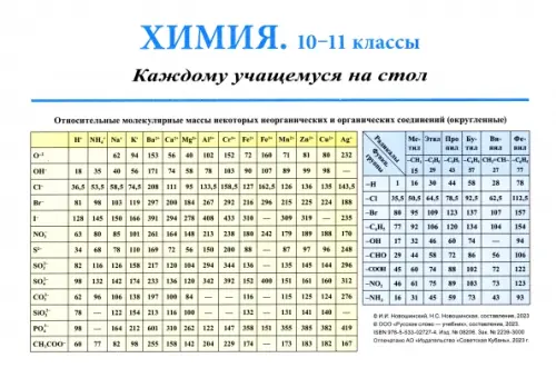 Аннотация: Химия. 10-11 классы. Каждому учащемуся на стол. Справочный материал