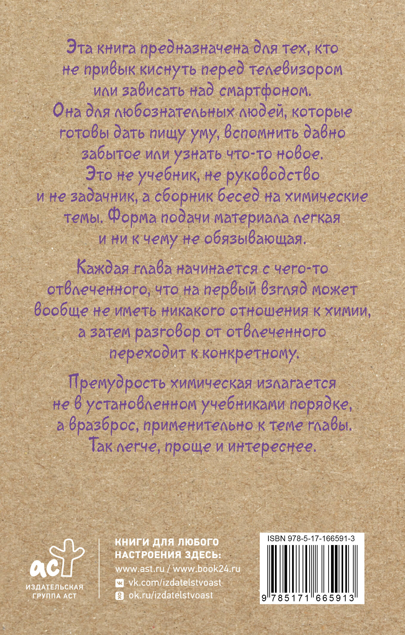 Эта книга предназначена для тех, кто не привык киснуть перед телевизором или зависать над смартфоном. Она для любознательных людей, которые готовы дать пищу уму, вспомнить давно забытое или узнать что-то новое. Эта книга - не учебник, не руководство и не задачник, а сборник бесед на химические темы. Форма подачи материала легкая и ни к чему не обязывающая. Каждая глава начинается с чего-то отвлеченного, что на первый взгляд может вообще не иметь никакого отношения к химии, а затем разговор от отвлеченного переходит к конкретному. Премудрость химическая излагается не в установленном учебниками порядке, а вразброс, применительно к теме главы. Так легче, проще и интереснее.| Издательство | Издательство "АСТ" |