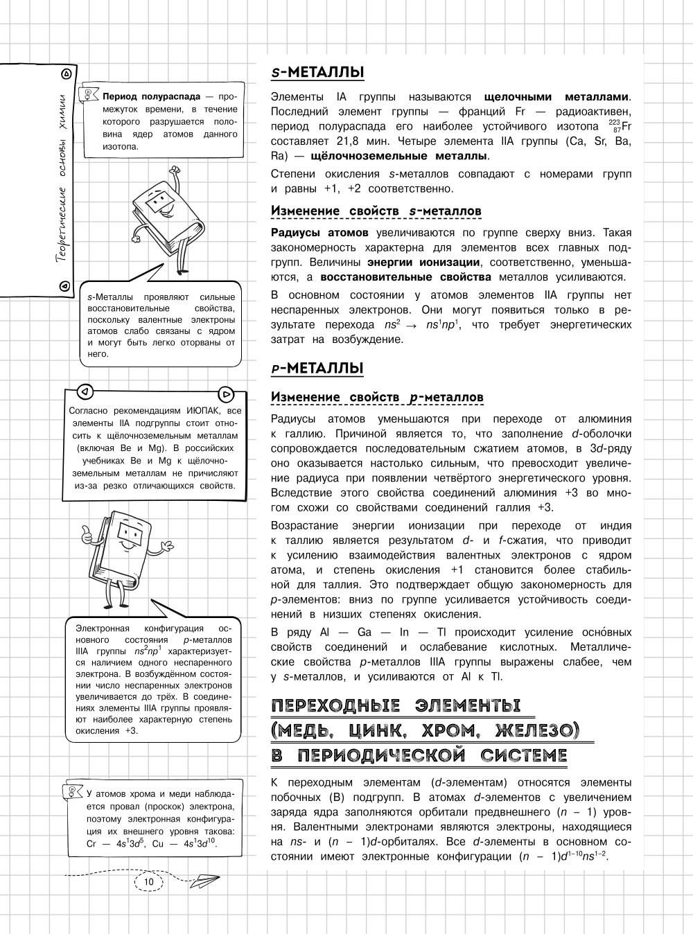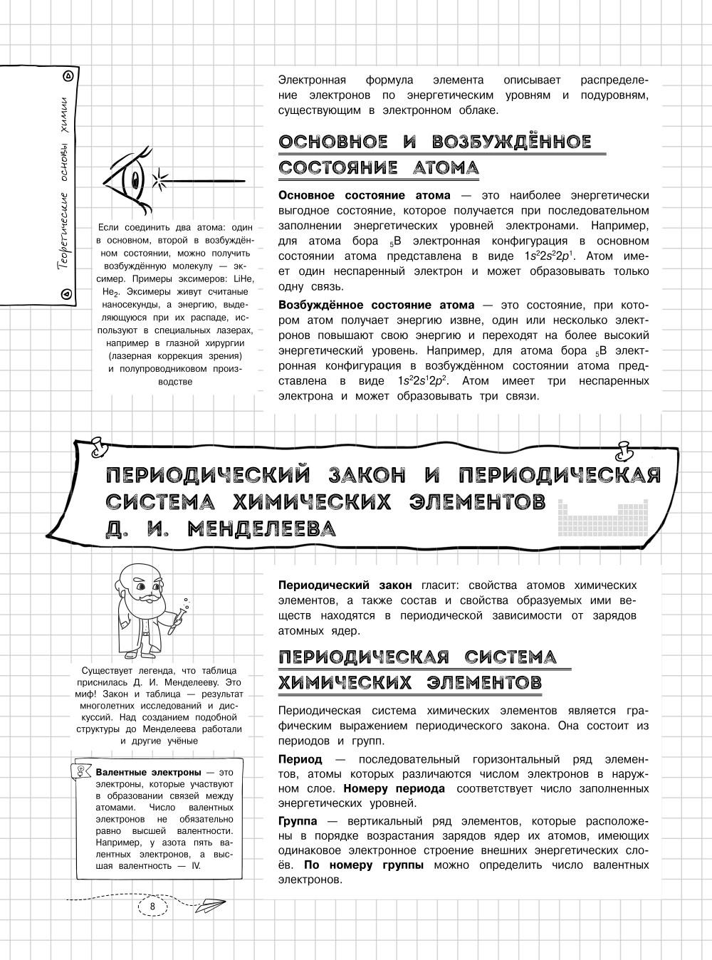 Справочник по химии в наглядных конспектах для учеников 8, 9, 10 и 11 классов превращает изучение каждой темы в увлекательное и познавательное приключение! Книга поможет запоминать и повторять материал на протяжении всего школьного курса. Благодаря наглядной подаче теории с примерами, схемами, а также забавными рисунками, текст становится доступным и интересным. Визуальный подход обеспечивает легкость восприятия и запоминания информации, ведь она оформлена в виде конспектов, словно ученик писал их сам. Всевозможные иллюстрации и места для собственных примеров и примечаний помогут сделать процесс обучения максимально простым и приятным! А при желании можно взять маркеры и сделать свой конспект еще более уникальным и персонализированным! - Все темы школьного курса. - Доступная подача материала. - Практические примеры. - Наглядные схемы и таблицы. - Множество забавных картинок. - Место для ваших записей и собственных рисунков. Погрузитесь в увлекательный мир химии вместе с наглядным справочником для подростков и почувствуйте, как знания становятся ближе, а учеба лучше! Книжка поможет подготовиться к ОГЭ, ЕГЭ и другим экзаменам 2026. Также пособие будет полезно для занятий родителей с детьми.