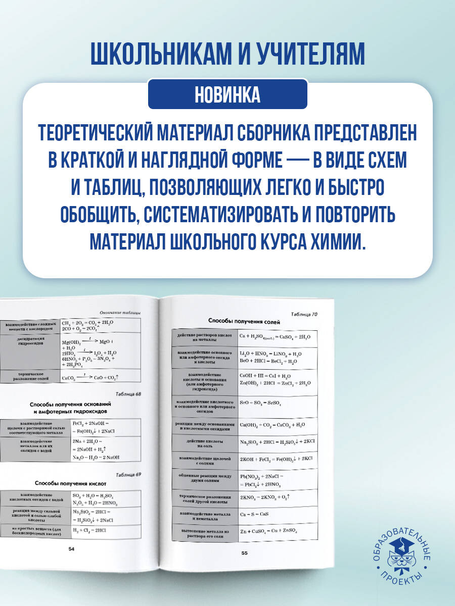 Справочное пособие включает все основные темы школьного курса химии в объёме, проверяемом на ОГЭ и ЕГЭ. Теоретический материал представлен в краткой и наглядной форме - в виде схем и таблиц, позволяющих легко и быстро обобщить, систематизировать и повторить материал школьного курса химии. Книга окажет эффективную помощь при подготовке к сдаче итоговых экзаменов.| Издательство | Издательство "АСТ" |