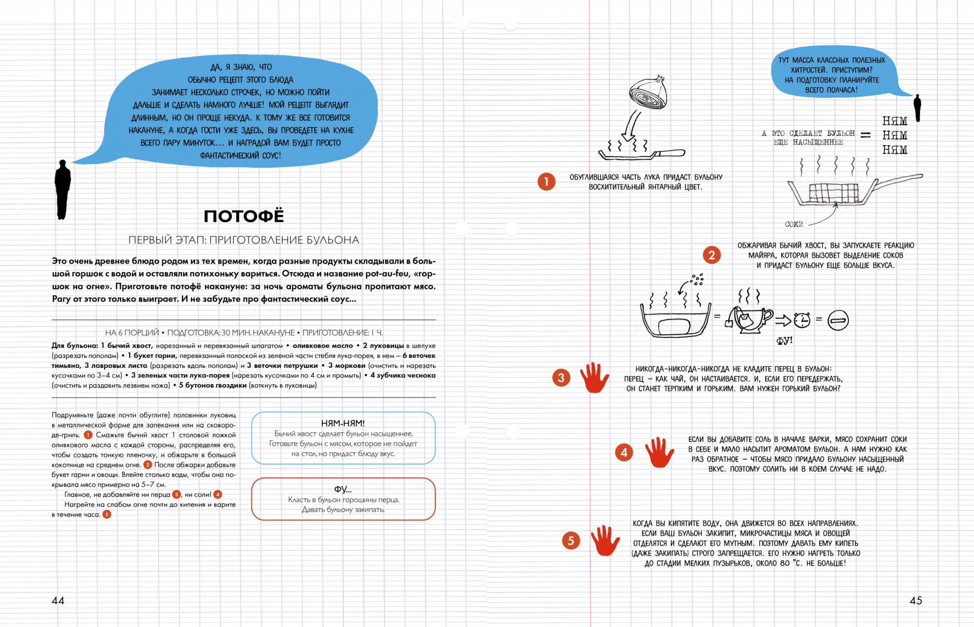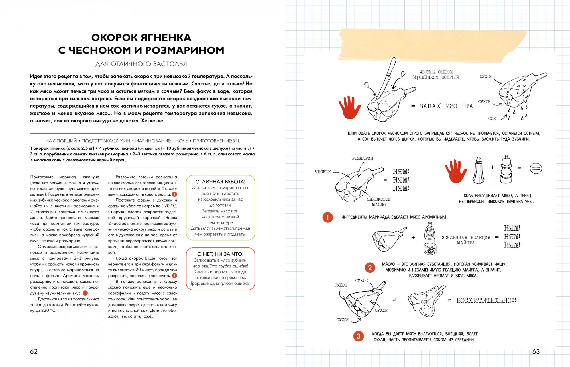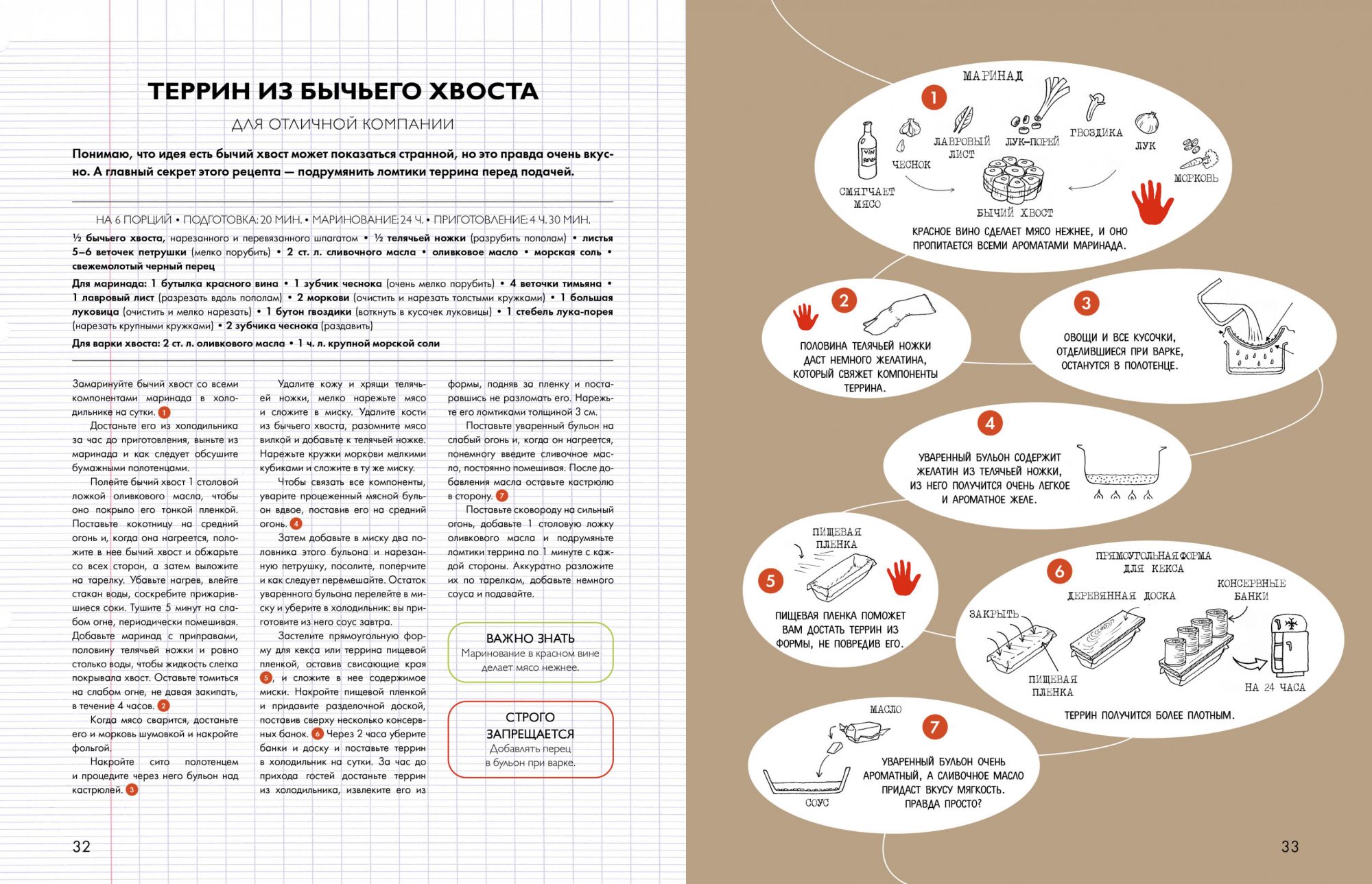 Артюр Ле Кен, автор нескольких кулинарных бестселлеров, с непревзойденным чувством юмора объясняет, что происходит в продуктах в процессе их приготовления. Кулинария - это химия и физика… но только на кухне, а не за партой или в лаборатории. Чтобы выучить урок на отлично, вовсе не нужно зубрить формулы и непонятные термины. Вооружившись 70 пошаговыми рецептами с оригинальной и забавной инфографикой, вы приготовите классические блюда французской (и не только) кухни не хуже, чем в ресторане. Воскресный ростбиф, потофё, лопатка ягненка по-гречески, буженина в молоке, биск, ризотто с морепродуктами, холодный огуречный суп и сырное суфле - из такого меню сложно выбрать что-то одно!