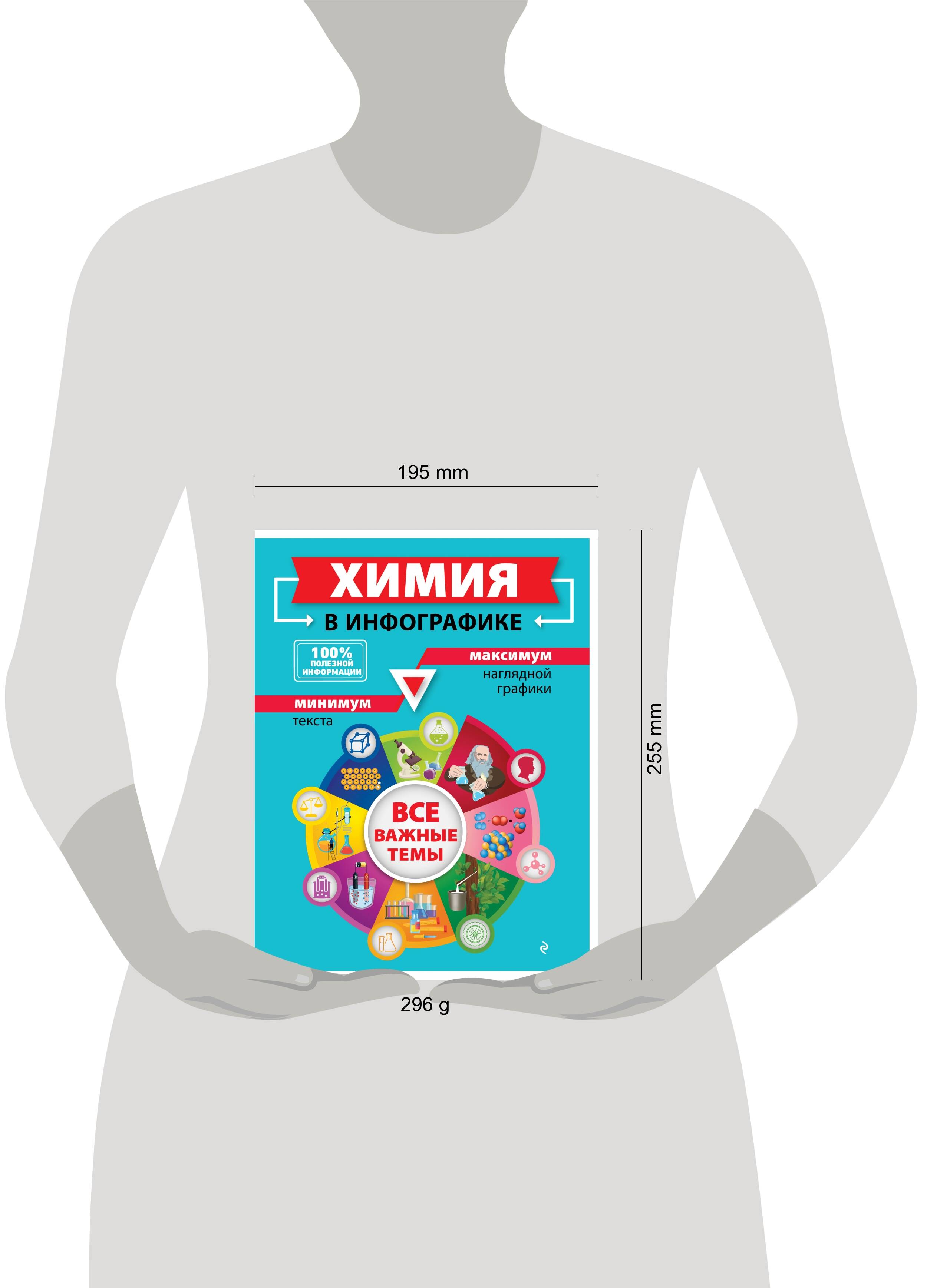 В издании с помощью инфографики - наглядных иллюстраций, схем, графиков, рисунков - представлены краткие сведения по основным темам школьного курса химии. Большое количество упорядоченной визуальной информации позволит быстрее и эффективнее усваивать учебный материал, повысит интерес и мотивацию учащихся, даст наиболее полное представление о предмете. Пособие окажет помощь школьникам в подготовке к урокам, контрольным, экзаменам, будет также полезно учителям и всем, кто интересуется химией. Современным школьникам намного проще усваивать материал, когда он представлен в визуально упрощённом виде. Информация, изложенная в инфографике, воспринимается мгновенно и даёт возможность найти и запомнить по-настоящему важные детали, сложить их воедино и получить полное представление об изучаемой теме. Изложение материала соответствует особенностям восприятия школьников - нет длинных описаний, сложных формулировок. Большой формат помогает визуально передать суть темы и облегчить её запоминание.| Издательство | ООО "Издательство "Эксмо" |