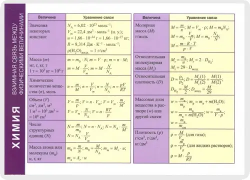 Аннотация: Химия. Взаимная связь между физическими величинами