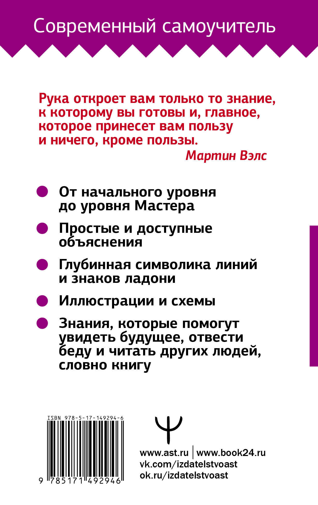 С книгой «Хиромантия для всех. Понятный самоучитель» Мартина Вэлса вы научитесь «читать по руке» и видеть знаки судьбы. В книге вы найдете ценную информацию, которая поможет вам не только больше узнать о себе и других людях, но и увидеть будущее, отвратить беду, наладить жизнь - свою, своих близких и всех тех, кому захотите помочь.| Издательство | АСТ |