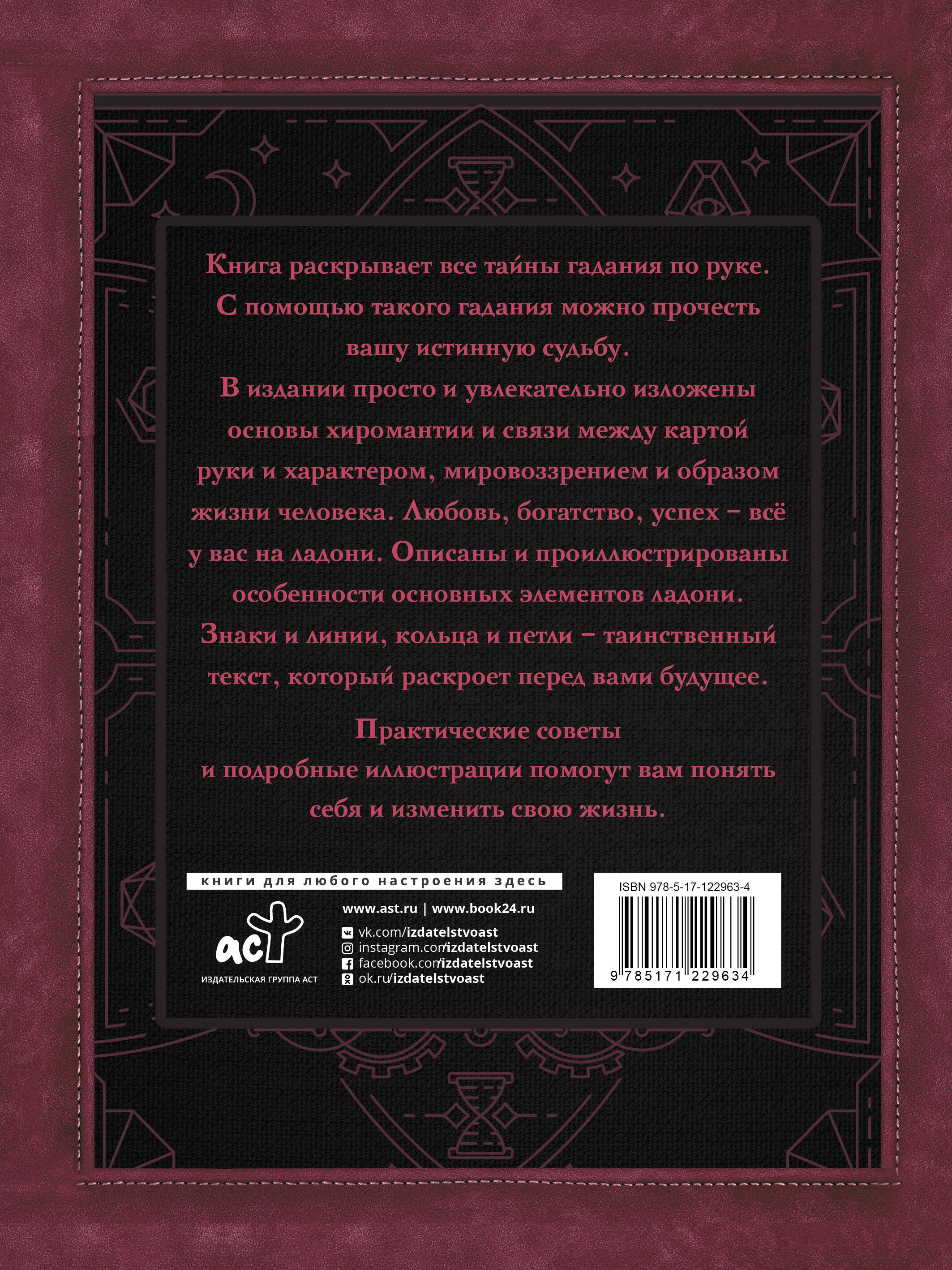 Книга о хиромантии - искусству гадания по руке. С помощью такого гадания можно прочесть вашу истинную судьбу. В издании просто и увлекательно изложены основы хиромантии и связи между картой руки и характером, мировоззрением и образом жизни человека. Любовь, богатство, успех - всё у вас на ладони. Описаны и проиллюстрированы особенности основных элементов ладони. Знаки и линии, кольца и петли - таинственный текст, который раскроет перед вами будущее. Практические советы и подробные иллюстрации помогут вам понять себя и изменить свою жизнь.| Издательство | Издательство "АСТ" |