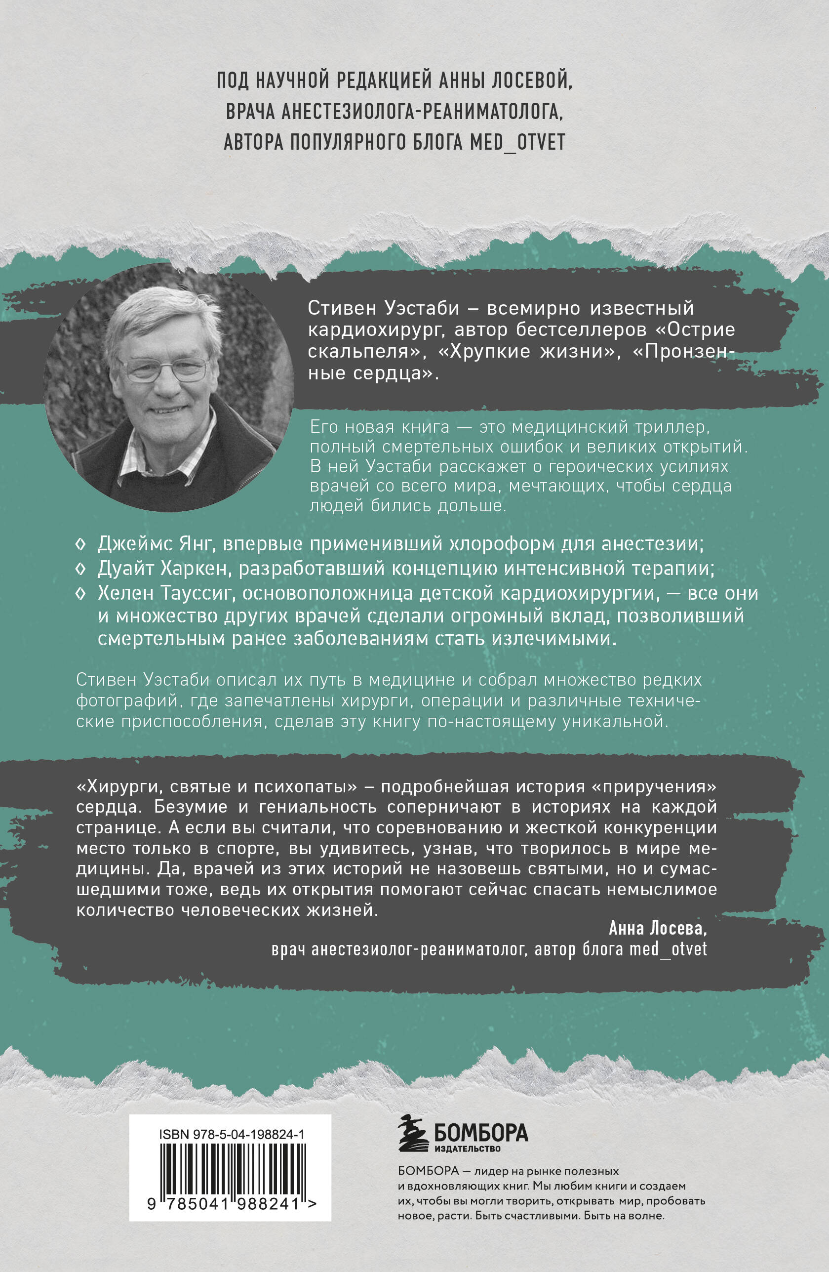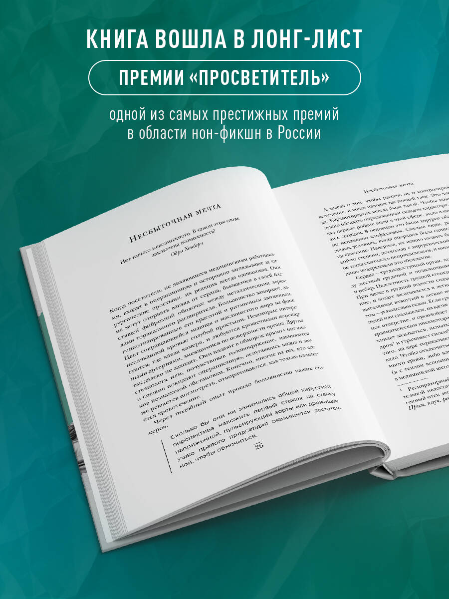 «Моя книга о кардиохирургии похожа на триллер, но с гораздо, гораздо бо́льшим числом трупов», - так отзывается автор о своей четвертой книге. Стивен Уэстаби как никто другой может рассказать об истории кардиохирургии, ведь он служит этой специальности более пятидесяти лет и многие из прорывов в области операций на сердце происходили не только на его глазах, но и при его непосредственном участии. Не ждите, что это будет описание сплошных побед и успехов, - не скрывая правды, Уэстаби рассказывает не только о больших открытиях, но и о провалах, приведших к смертям пациентов. Честный, невероятно интересный и очень личный рассказ о деле всей жизни - вот как можно охарактеризовать эту книгу. Вы станете свидетелем того, как развивалась медицина последние 200 лет и как человечество перешло от операций без анестезии к внедрению электрических насосов в человеческое сердце.