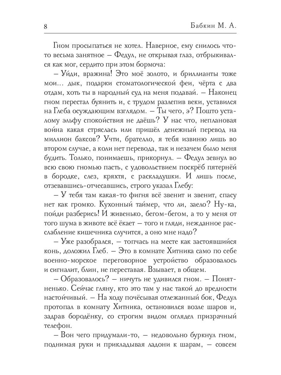 Что делать, если колдовски обезглавленному мастеру-хаку наконец-то возвращена его голова, но никак не получается вернуть в тело утерянную душу: не позволяет наложенное колдуном проклятье невезения? Единственный вариант - вновь отправляться в путь! И не куда-нибудь, а прямиком в столицу волшебной империи, ко двору императора. На поклон к зловредному колдуну... Путь предстоит непростой и тяжёлый: для начала нелегальный переход через границу по подземным диггерским лазейкам, в компании с проводником-упырём. А дальше уж как получится, как удастся... Потому что бравую троицу - обычника, гнома и бабая, - тайно преследуют два орка-особиста, с конкретным заданием от могущественного заказчика. И они, орки, в достижении своей цели не остановятся ни перед чем! Даже перед убийством.| Издательство | Т8 RUGRAM |