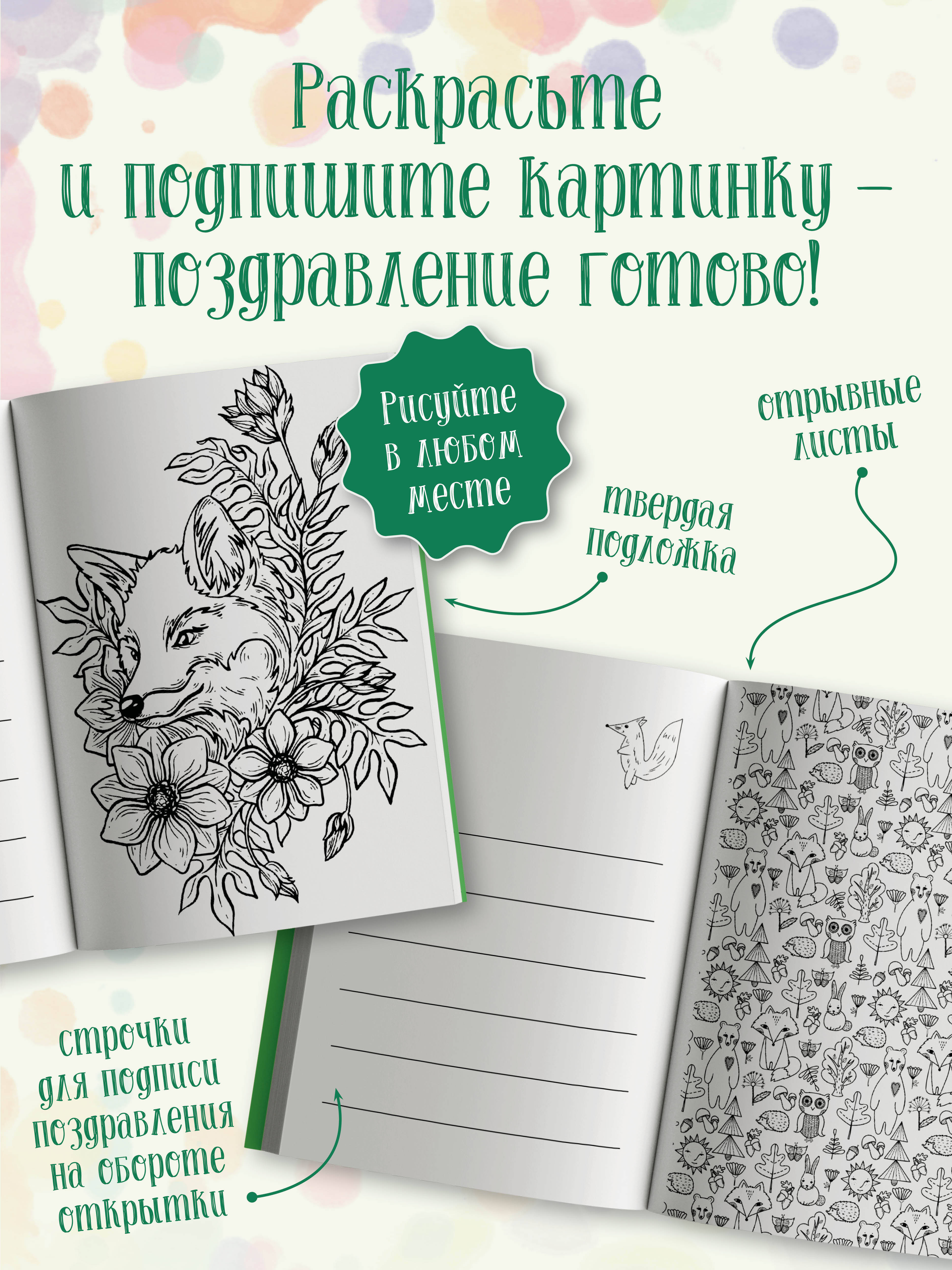 Отрывные листы и твердая подложка для рисования - помогут комфортно и в любом месте создать hand-made открытку и сразу ее вручить. Просто раскрасьте милого лисенка и подарите его другу!| Издательство | Издательство "АСТ" |