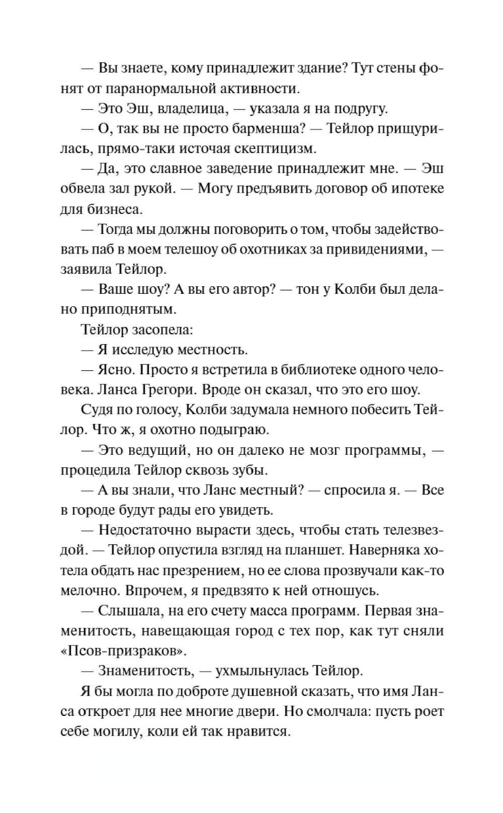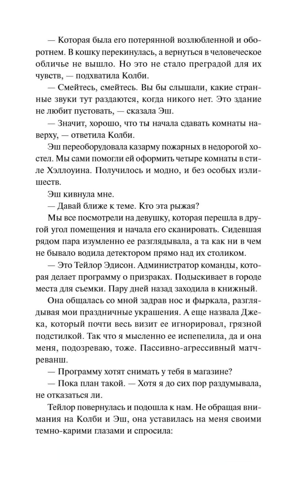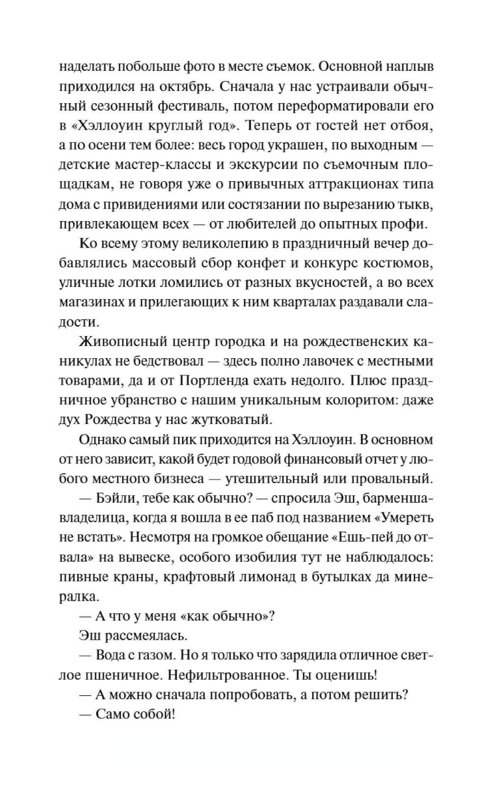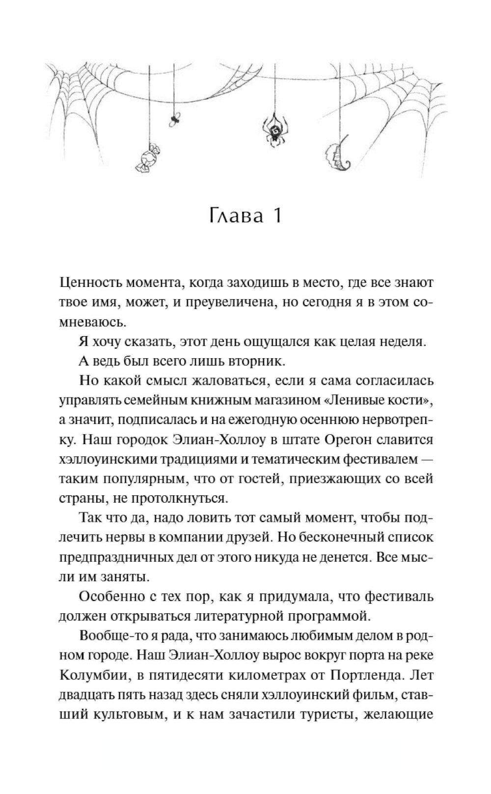 Уютный детектив с хэллоуинским шармом и книжной атмосферой. Городок Элиан-Холлоу прославился после съемок культового фильма ужасов и с тех пор живет в режиме вечного Хэллоуина, принимая туристов круглый год. В преддверии очередного праздника сюда приезжает съемочная группа популярного реалити-шоу об охоте на привидений - и первой локацией нового сезона становится книжный магазин «Ленивые кости». Его хозяйка, Бэйли Бриггс, занята подготовкой к тематическому литературному фестивалю. Но праздник омрачается загадочным убийством, и все улики неожиданно указывают на саму Бэйли. Чтобы вернуть себе доброе имя, она вынуждена начать собственное расследование - и очень скоро город Хэллоуина откроет ей свои самые мрачные тайны...| Издательство | Манн, Иванов и Фербер |