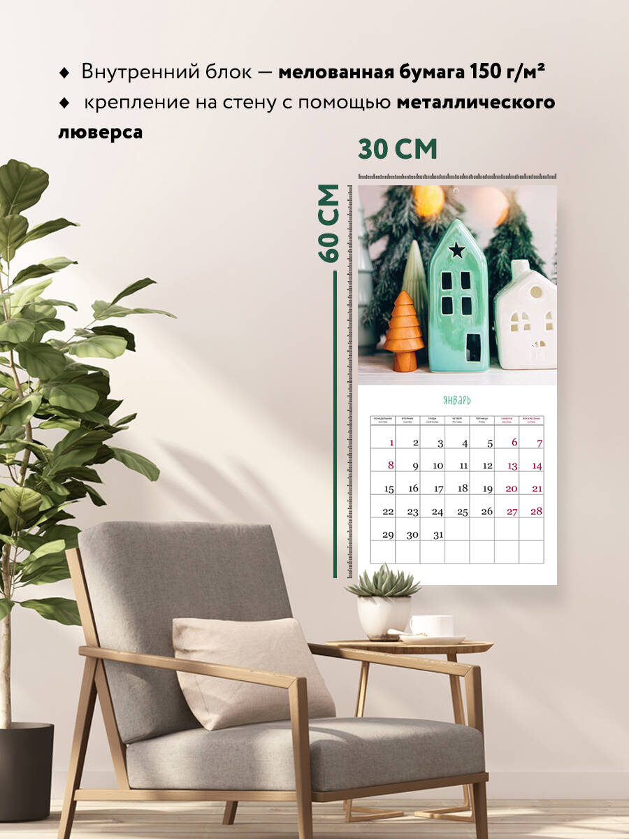 О серии: Наши настенные календари отличаются высоким качеством исполнения! Тщательно подобранные иллюстрации, напечатанные на глянцевой бумаге высочайшего качества, станут настоящим украшением дома, а в календарной сетке найдется место для ваших планов: большие клетки позволят делать записи и организовать свой год! В календаре также отмечены все государственные праздники. В серии настенных календарей издательства «ЭКСМО» каждый найдет тему по вкусу: великие художники, великолепные подборки с самыми знаменитыми произведениями искусства, легендарные кинематографические саги и игры, главные книжные авторы и бестселлеры, фотографии и иллюстрации любимых животных и многое-многое другое! О календаре: Хотите привнести в свой дом атмосферу уюта, а в жизнь - немного волшебства? С календарем «Хюгге» каждый ваш день станет немного светлее и счастливее. Отмечайте важные события и замечайте мелочи, которые вас окружают. Ведь все в жизни может стать Хюгге: чашка какао, вечер за чтением любимой книги, посиделки с друзьями, свеча с ароматом ванили и корицы или свидание с любимым. Стоит только захотеть! Для кого: Красочные фотографии, напечатанные на высококачественной бумаге, создадут атмосферу тепла и уюта в вашем интерьере и будут радовать в течение всего следующего года! Технические параметры: - Тип календаря - настенный перекидной. - Год - 2024. - Календарная сетка - с разбивкой по месяцам. - Вид скрепления - скрепка. - Ширина - 30 см. - Высота - 30 см. - Внутренний блок - мелованная бумага 150 г/м2. - Подложка - плотный гофрокартон для поддержания формы. - Индивидуальная упаковка в плотный целлофановый пакет.| Издательство | ООО "Издательство "Эксмо" |