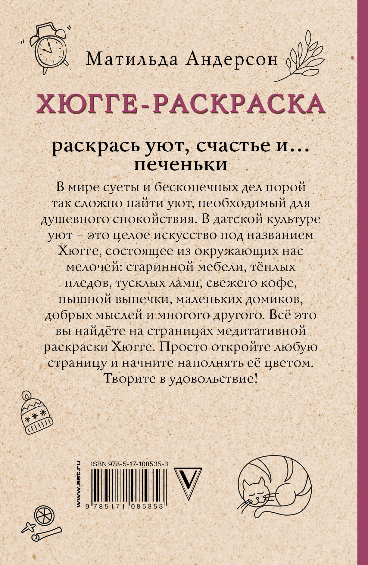 Аннотация: Хюгге-раскраска. Раскрась уют, счастье и... печеньки. Раскраски антистресс