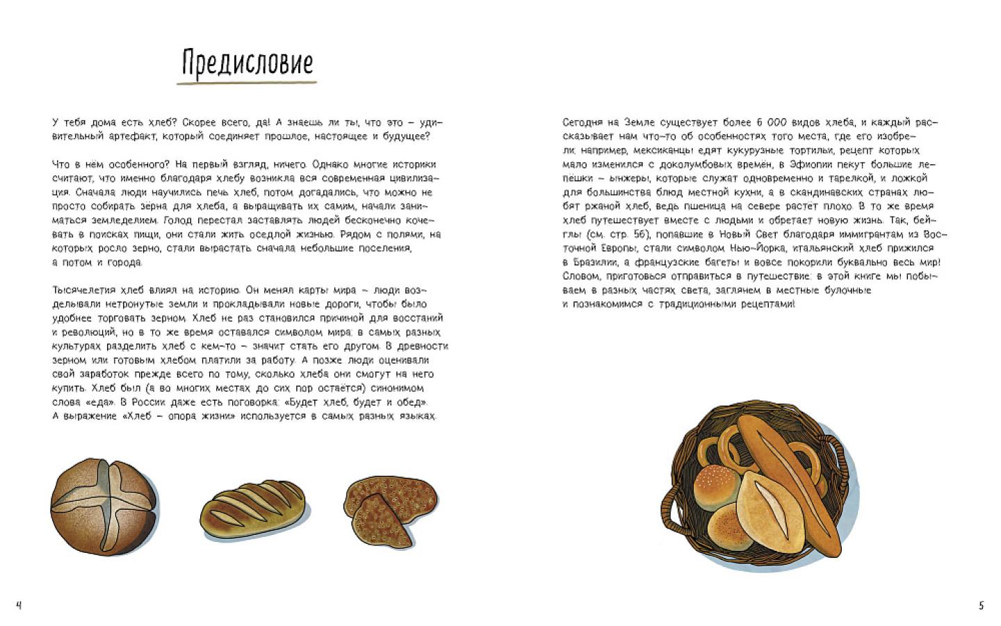 Скажи, какой хлеб любят у тебя дома, и я угадаю, откуда ты родом. А пробовал ли ты когда-нибудь итальянскую фокаччу, индийскую булочку пав, японский хлеб сёкупан и маорийский картофельный хлеб рэвену? Всего четыре ингредиента - мука, вода, соль и дрожжи. А хлеб получается разный. Хлеб ценят и любят везде. Давай отправимся в кругосветное хлебное путешествие. Побываем на разных континентах, в разных странах, городах и даже на полярной станции. А по дороге заглянем в местные булочные и пекарни и узнаем, как готовят хлеб по всему миру. Тебя ждут увлекательные квесты и национальные рецепты. Что может быть вкуснее свежего хлеба?| Издательство | Самокат |