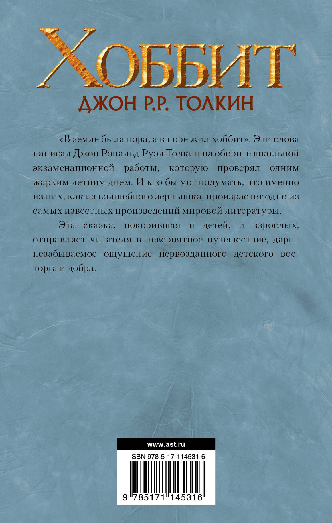 "В земле была нора, а в норе жил хоббит". Эти слова написал Джон Рональд Руэл Толкин на обороте школьной экзаменационной работы, которую проверял одним жарким летним днем. И кто бы мог подумать, что именно из них, как из волшебного зернышка, произрастет одно из самых известных произведений мировой литературы. Это сказка, покорившая и детей, и взрослых, отправляет читателя в невероятное путешествие, дарит незабываемое ощущение первозданного детского восторга и добра.| Издательство | ИЗДАТЕЛЬСТВО "АСТ" |
