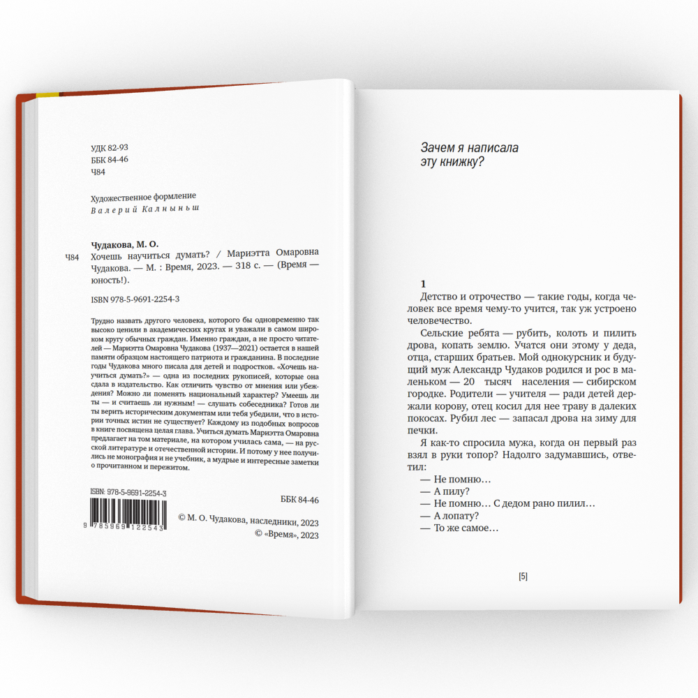 Трудно назвать другого человека, которого бы одновременно так высоко ценили в академических кругах и уважали в самом широком кругу обычных граждан. Именно граждан, а не просто читателей - Мариэтта Омаровна Чудакова (1937-2021) остается в нашей памяти образцом настоящего патриота и гражданина. В последние годы Чудакова много писала для детей и подростков. «Хочешь научиться думать?» - одна из последних рукописей, которые она сдала в издательство. Как отличить чувство от мнения или убеждения? Можно ли поменять национальный характер? Умеешь ли ты - и считаешь ли нужным! - слушать собеседника? Готов ли ты верить историческим документам или тебя убедили, что в истории точных истин не существует? Каждому из подобных вопросов в книге посвящена целая глава. Учиться думать Мариэтта Омаровна предлагает на том материале, на котором училась сама, - на русской литературе и отечественной истории. И потому у нее получились не монография и не учебник, а мудрые и интересные заметки о прочитанном и пережитом.| Издательство | Время |