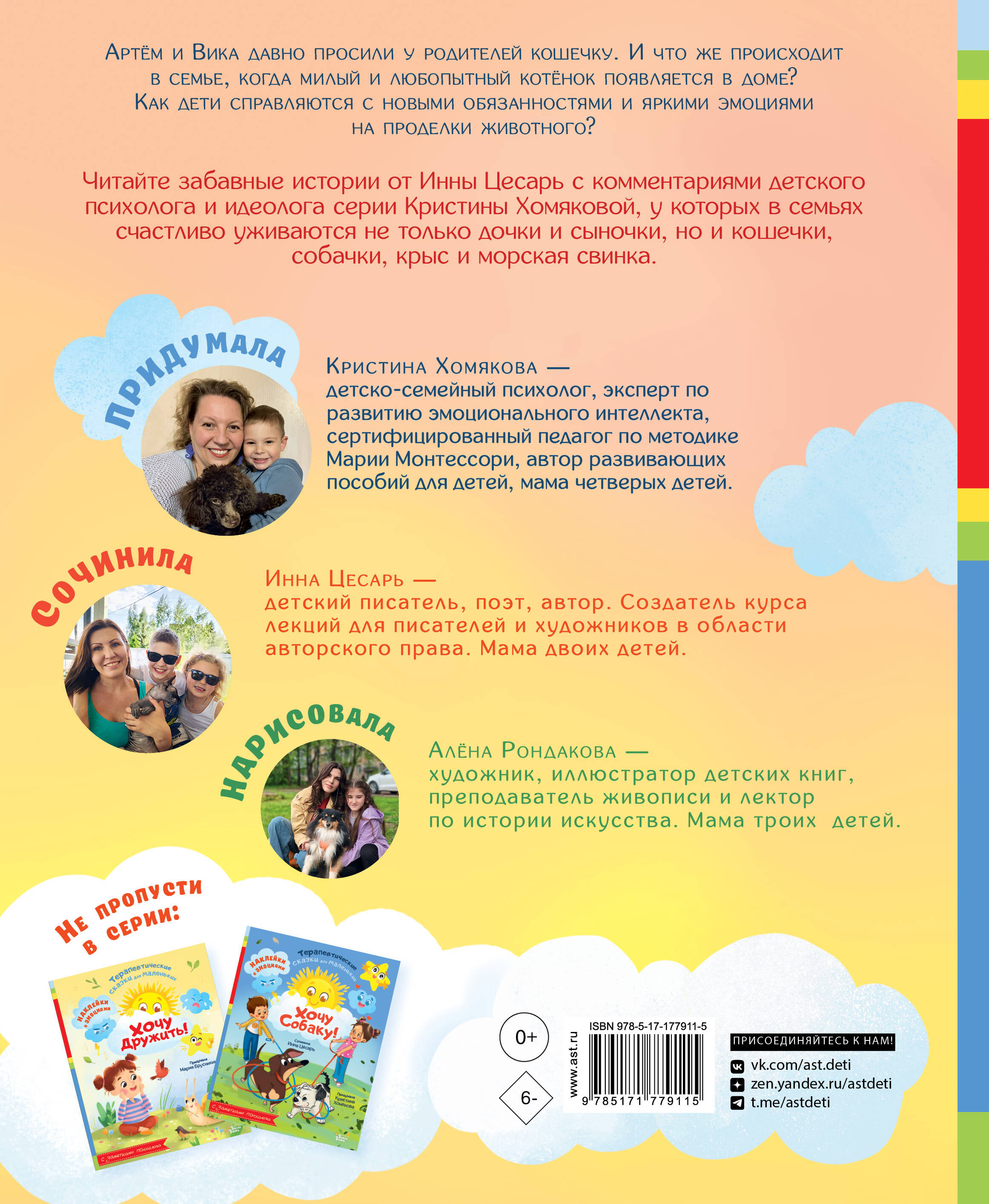 АРТЁМ И ВИКА ДАВНО ПРОСИЛИ У РОДИТЕЛЕЙ КОШЕЧКУ. И ЧТО ЖЕ ПРОИСХОДИТ В СЕМЬЕ, КОГДА МИЛЫЙ И ЛЮБОПЫТНЫЙ КОТЁНОК ПОЯВЛЯЕТСЯ В ДОМЕ? КАК ДЕТИ СПРАВЛЯЮТСЯ С НОВЫМИ ОБЯЗАННОСТЯМИ И ЯРКИМИ ЭМОЦИЯМИ НА ПРОДЕЛКИ ЖИВОТНОГО? Читайте забавные истории от Инны Цесарь с комментариями детского психолога и идеолога серии Кристины Хомяковой, у которых в семьях счастливо уживаются не только дочки и сыночки, но и кошечки, собачки, крыс и морская свинка.| Издательство | Издательство "АСТ" |