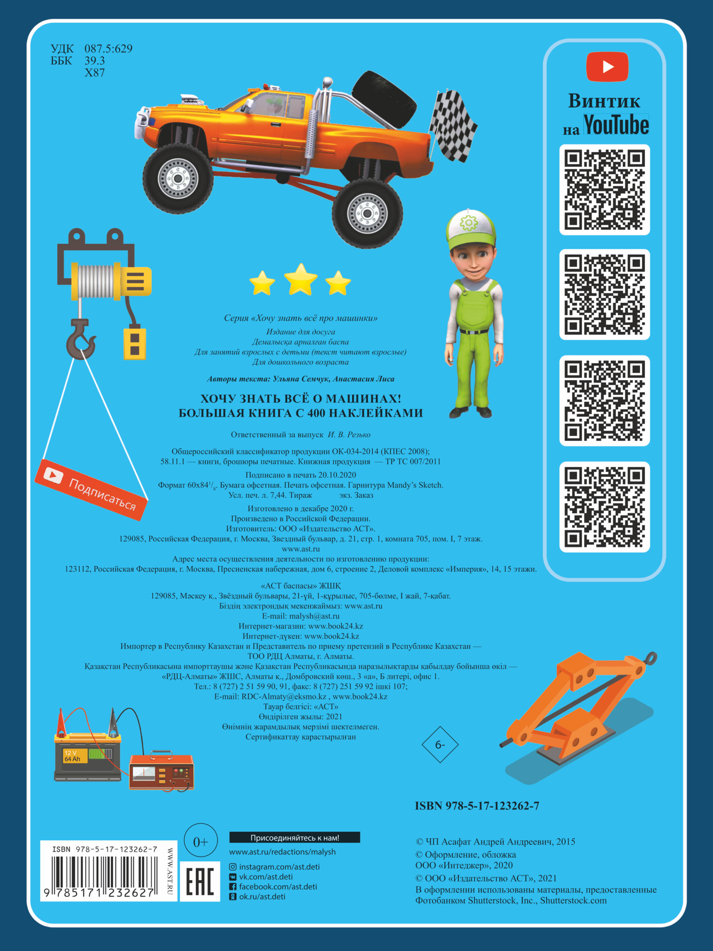 ХОЧУ ЗНАТЬ ВСЁ О МАШИНАХ! - это настоящий подарок для юных автолюбителей. В книге ребята познакомятся с Винтиком - популярным персонажем детского канала на You Tube "Хочу знать всё", собравшего миллионы просмотров и тысячи подписчиков. Этот неунывающий герой знает всё о самых разных машинах и готов поделиться своими знаниями с читателями. Вместе с Винтиком ребята познакомятся со строительными и специальными и супермашинами, узнают, чем они отличаются и как работают. А ещё научатся азам ремонта автомобилей, дорог и даже домов. Не волнуйтесь, изучение машин будет вовсе не скучным, ведь книга исполнена как комикс, что делает её чтение весёлым и непринуждённым. Но главное - это 400 наклеек, которые превратят знакомство с автомобилями в активное развлечение и не оставят равнодушным ни одного ребёнка. С Винтиком не заскучаешь!| Издательство | ИЗДАТЕЛЬСТВО "АСТ" |