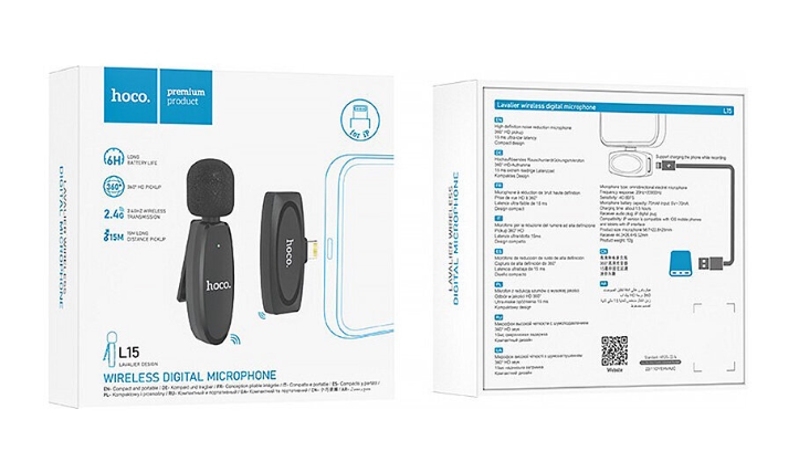 Hoco L-15 это беспроводной цифровой петличный микрофон с высокой чувствительностью и низкой задержкой передачи. Подходит для записи видео, интервью, стриминга и онлайн-конференций. Комплект включает приёмник с разъёмом Lightning, что делает устройство совместимым с большинством современных смартфонов и ПК.