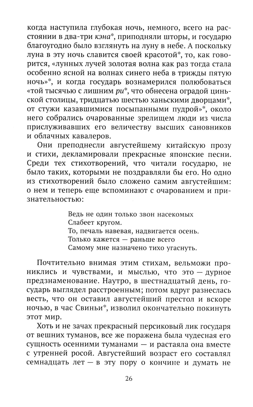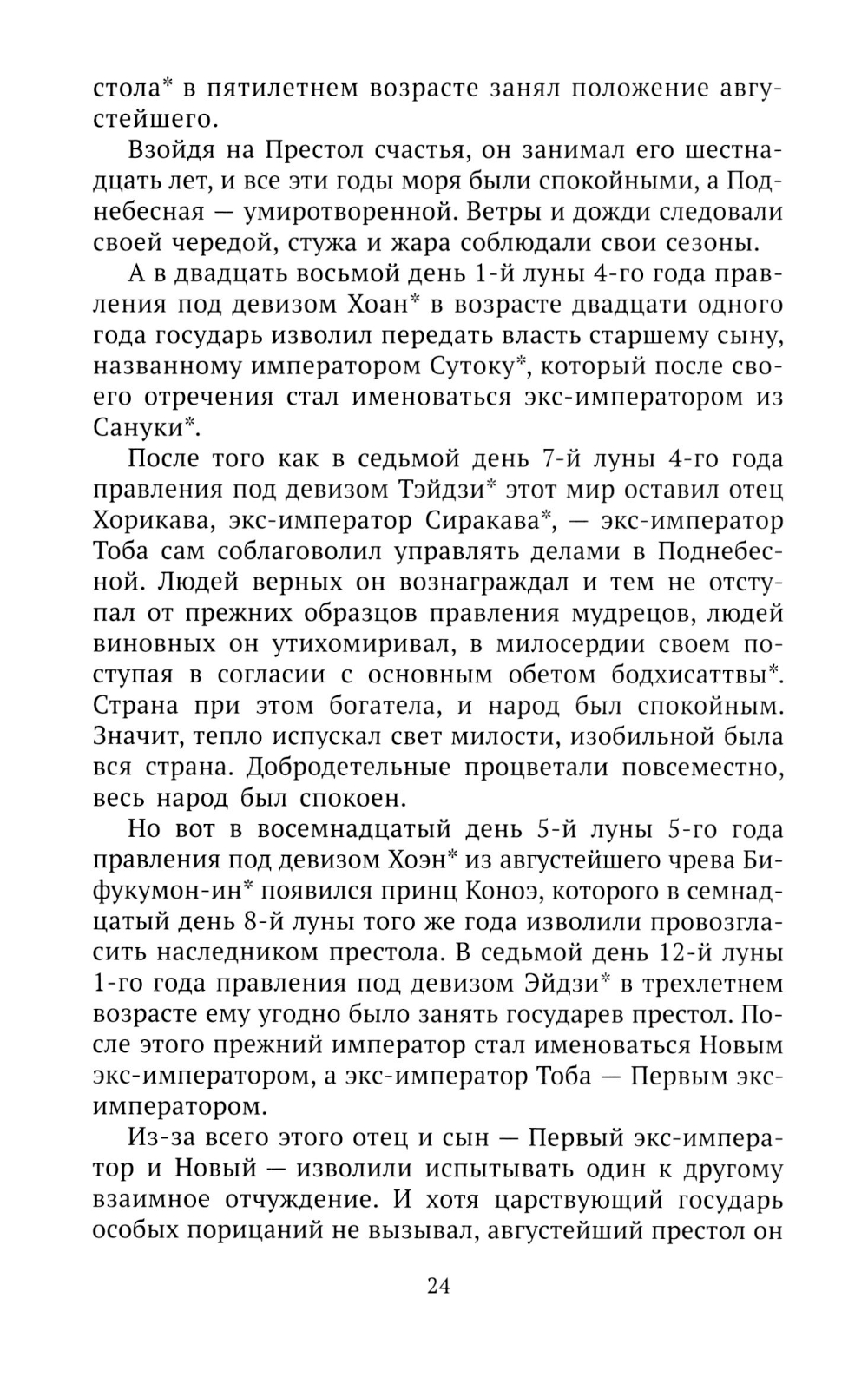 Межклановая борьба в Японии второй половины XII в. трижды приводила к вооруженным конфликтам - в 1156, 1159-1160 и в 1185 гг. Это было время прихода к абсолютной власти, безраздельного господства, а затем сокрушительного поражения и гибели феодального дома Тайра под ударами соперничавшего с ним дома Минамото. Каждый из этих конфликтов лег в основу серии устных сказаний, называемых «гунки» (дословно «воинские сказания»). Самое первое из них, «Хогэн моногатари», повествует о смуте 1156 г., когда после смерти эксимператора Тоба три крупных феодальных дома (Фудзивара, Тайра и Минамото) столкнулись между собою в борьбе за верховную власть. Четвертой стороной борьбы были крупные буддийские монастыри с грозными монахами-воинами. Это была междоусобная битва не на жизнь, а на смерть, в которой сын шел против отца, брат на брата, нарушая все человеческие и небесные законы. О тех жестоких временах слагались баллады, которые под аккомпанемент японской лютни бива нараспев читали бродячие сказители бива-хоси - средневековые японцы верили, что рассказы о погибших героях даруют упокоение их мятежным душам...| Издательство | Гиперион |