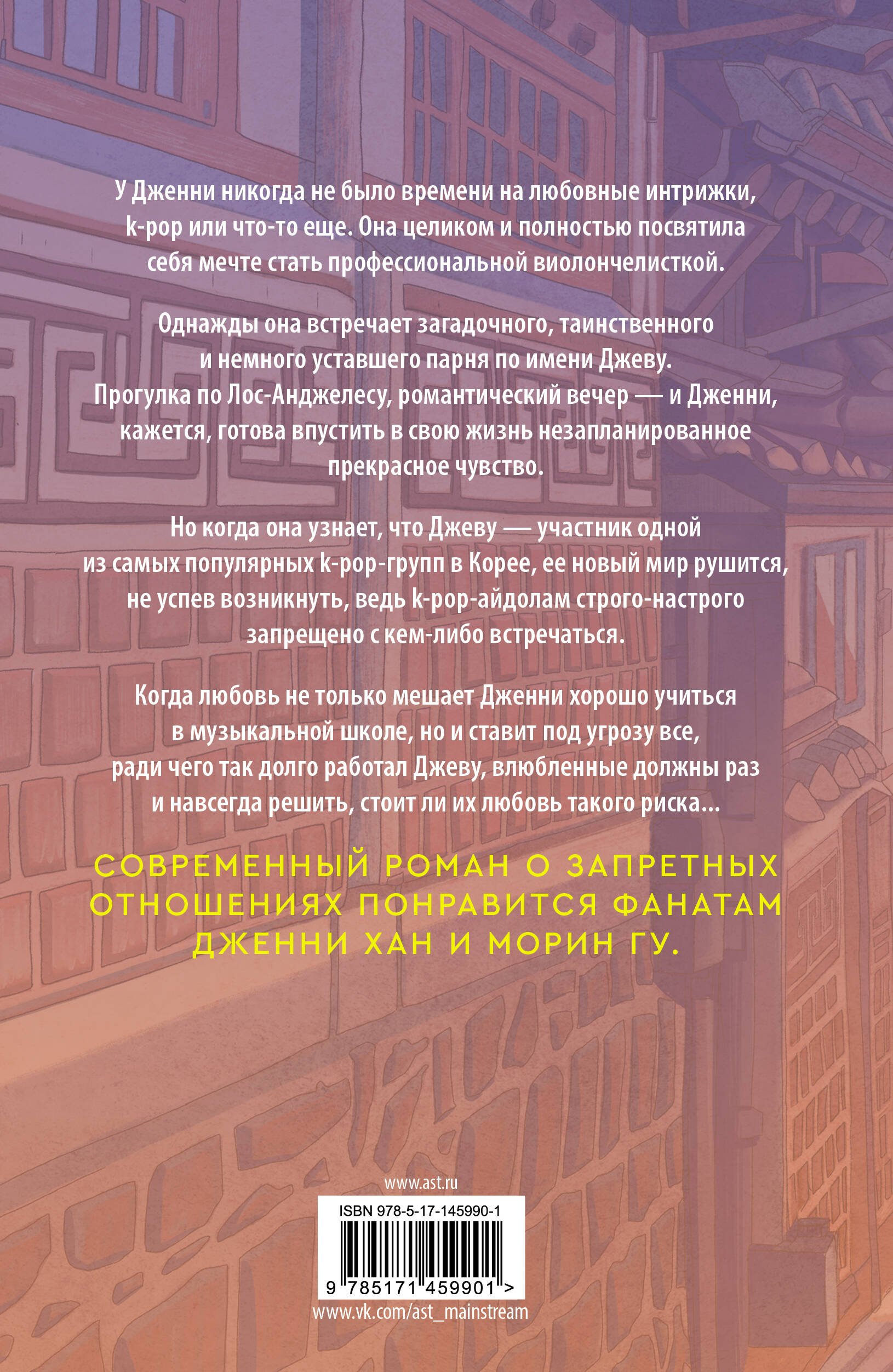 СОВРЕМЕННЫЙ РОМАН О ЗАПРЕТНЫХ ОТНОШЕНИЯХ ПОНРАВИТСЯ ФАНАТАМ ДЖЕННИ ХАН И МОРИН ГУ Джеву - участник одной из самых популярных k-pop-групп в Корее. Ему строго-настрого запрещено встречаться с девчонками. У Дженни нет времени на любовные интрижки. Она целиком и полностью посвятила себя мечте стать профессиональной виолончелисткой. Но всего лишь одна прогулка по Лос-Анджелесу, всего лишь один романтический вечер может перевернуть их жизни. Когда любовь не только мешает Дженни хорошо учиться в музыкальной школе, но и ставит под угрозу все, ради чего так долго работал Джеву, влюбленные должны раз и навсегда решить, стоит ли их любовь такого риска... Что, если ради любви всей жизни тебе придется рискнуть жизнью, которую ты всегда любила?| Издательство | АСТ |