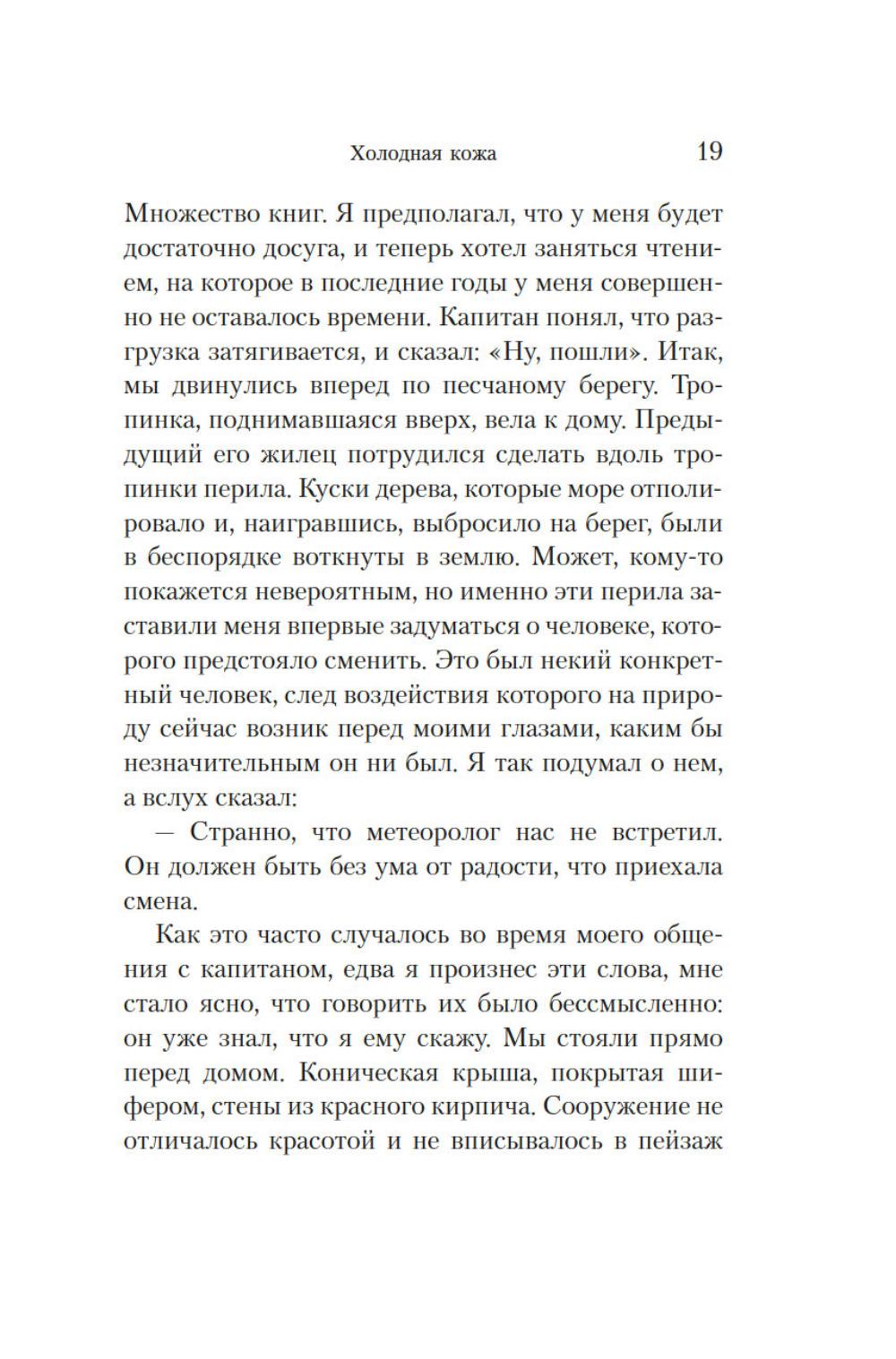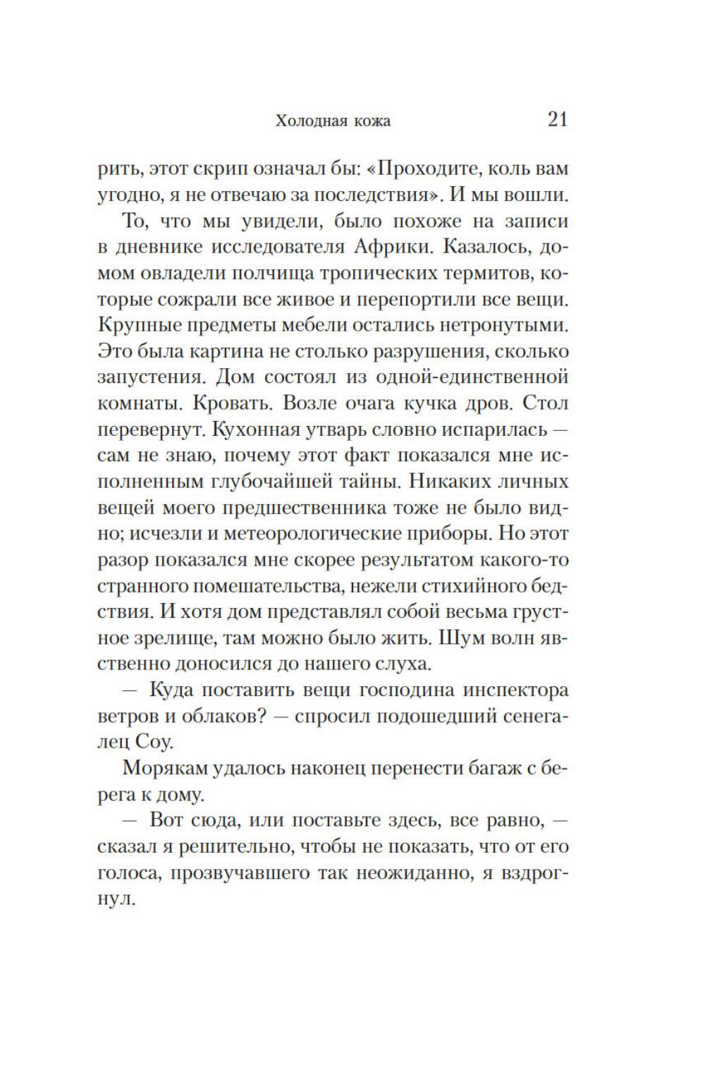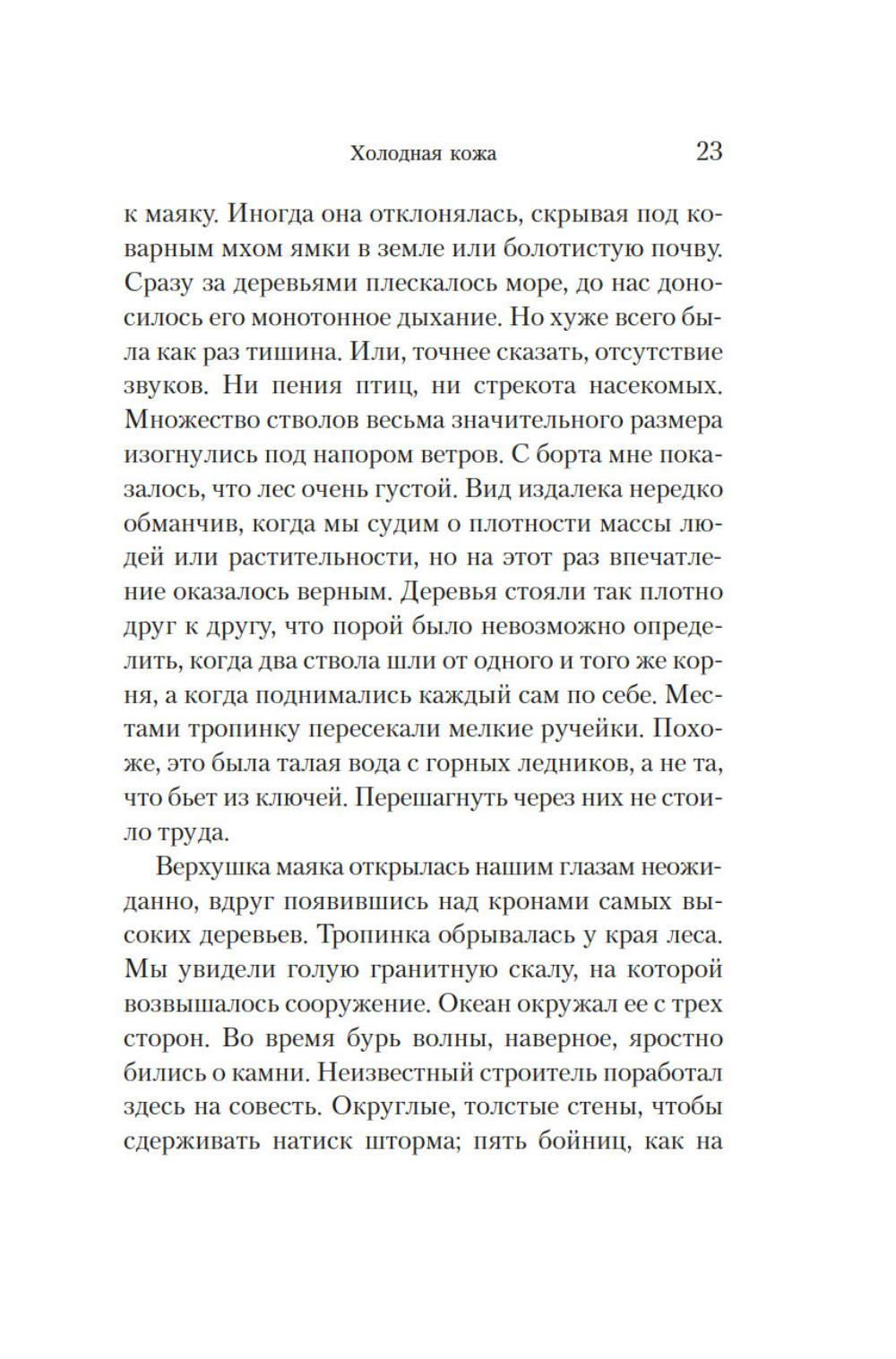 Разочарованный в жизни ирландец нанимается метеорологом в навигационную корпорацию и отправляется на далекий антарктический остров, предвкушая скучную жизнь вдали от мира, в обществе одного лишь смотрителя маяка. Но в первую же ночь на остров выходят порождения моря, и добровольное отшельничество оборачивается нескончаемым кошмаром. Что происходит с людьми, когда они сталкиваются с непознанным? Два человека на острове исчерпают познание и обнаружат, что в его глубинах таится бездна. Альберт Санчес Пиньоль - ученый-антрополог, одна из крупнейших и наиболее самобытных звезд каталанской литературы. Он творец удивительных миров, в которых перемешивается реальное и фантастическое, а человек снова и снова сталкивается с Иными в лучших традициях Лавкрафта, Конрада и Стивенсона. «Холодная кожа», первый роман Санчеса Пиньоля, стал сенсацией в 2002 году, выдержал уже около тридцати переизданий в Испании и Каталонии, переведен на 37 языков и с успехом экранизирован Ксавье Жансом (в российском прокате этот фильм 2017 года выходил под названием «Атлантида»). Снова и снова с наступлением ночи дети моря выходят на берег, но кто здесь Иные - они, пришедшие из черноты океана, или мы, носители представлений о цивилизации, неспособные увидеть в Ином живого?| Издательство | Азбука |