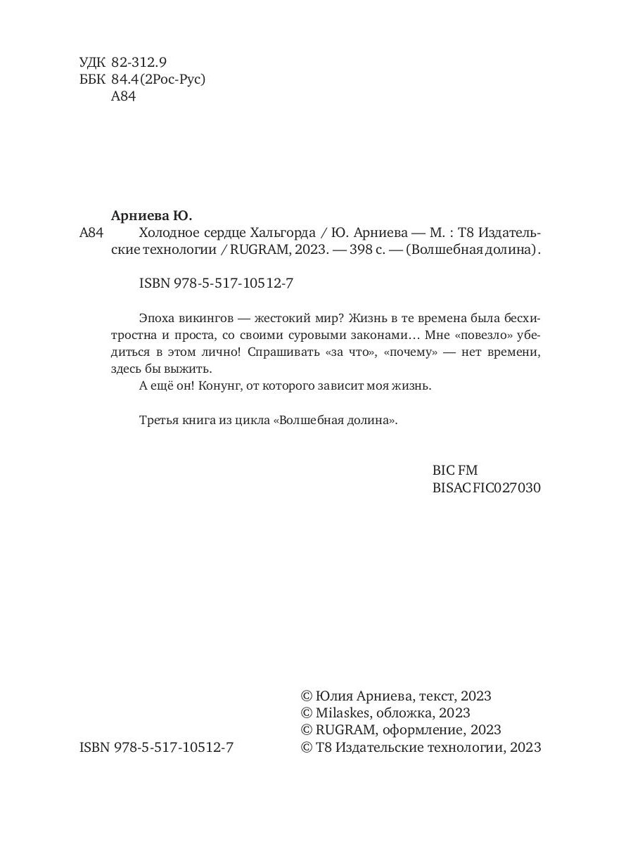Эпоха викингов - жестокий мир? Жизнь в те времена была бесхитростна и проста, со своими суровыми законами… Мне «повезло» убедиться в этом лично! Спрашивать «за что», «почему» - нет времени, здесь бы выжить. А ещё он! Конунг, от которого зависит моя жизнь.| Издательство | Т8 RUGRAM |