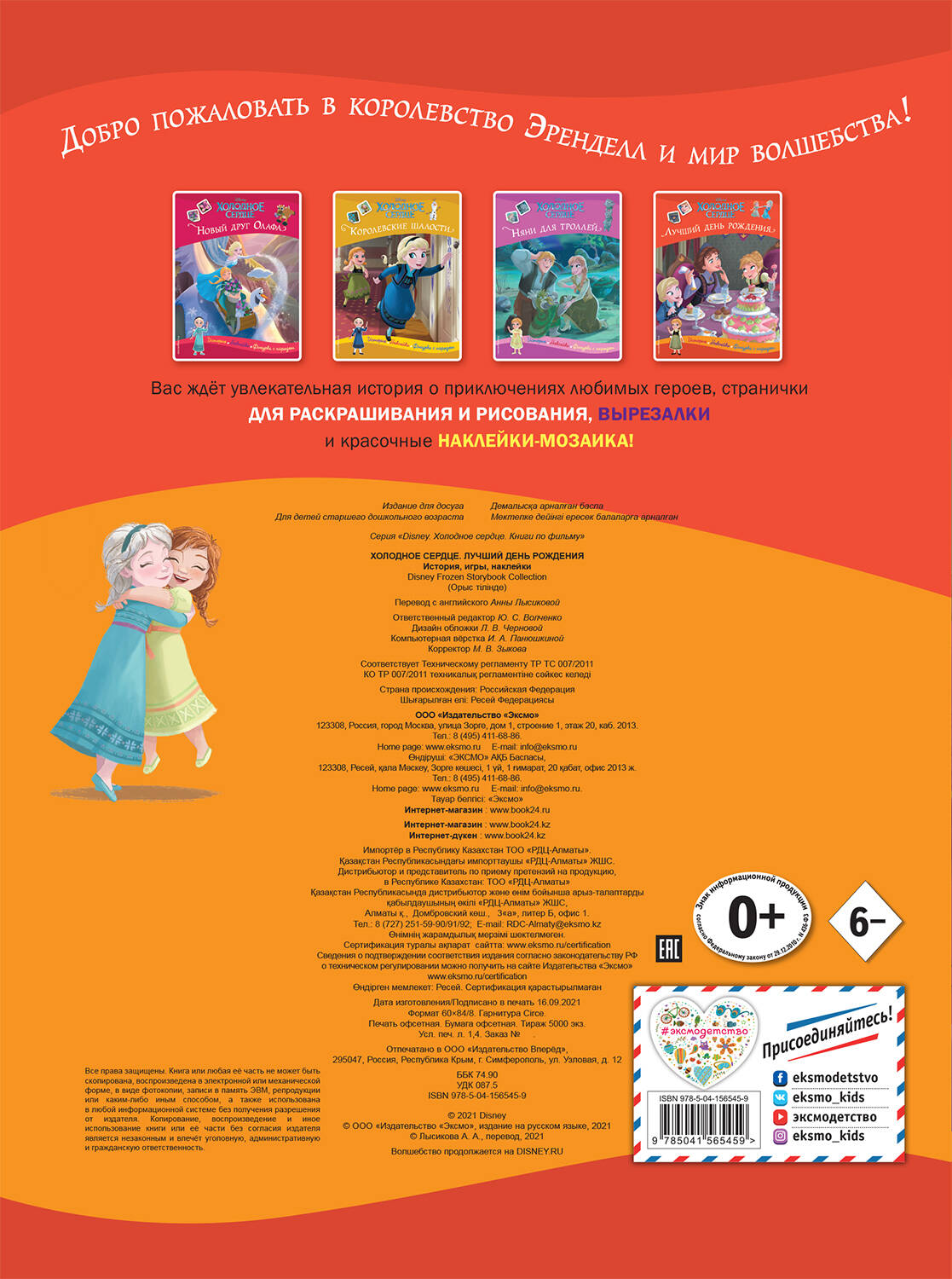 Вас ждёт забавная история о приключениях маленьких Анны и Эльзы, очаровательные рисовалки, вырезалки и красочные наклейки-мозаика. Добро пожаловать в королевство Эренделл и мир волшебства!